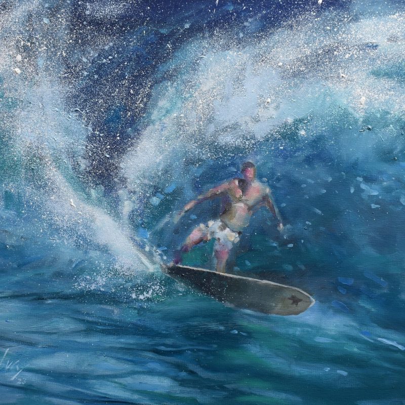 This artwork has been finished with layers of professional grade archival varnish for extra protection, colour enhancement and a beautiful smooth finish. The metallic paint used reflects the shifting light beautifully really bringing the painting to life.