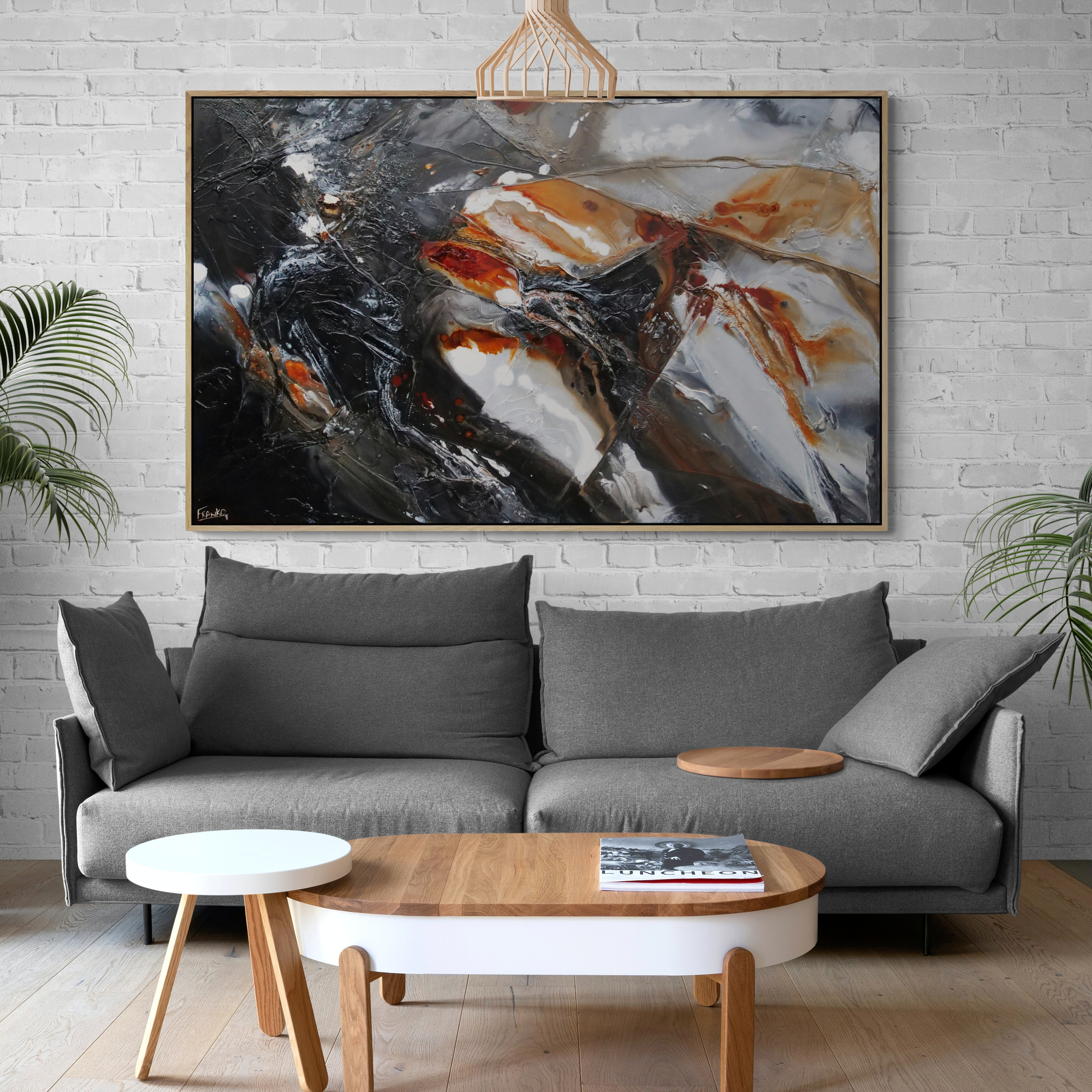 Provided with listings are some insitu images. We strive to ensure they are accurate in scale. Sometimes we will add an external frame to the painting insitu, to provide a vibe for how that would look also. As mentioned above, my pieces arrive ready to install with gallery finished edges and honestly, most people don’t add external framing. However, it is of course an option. If you have any questions, please let me know. We are here to help and want to make it as easy as possible for you if your décor aspirations require it.
