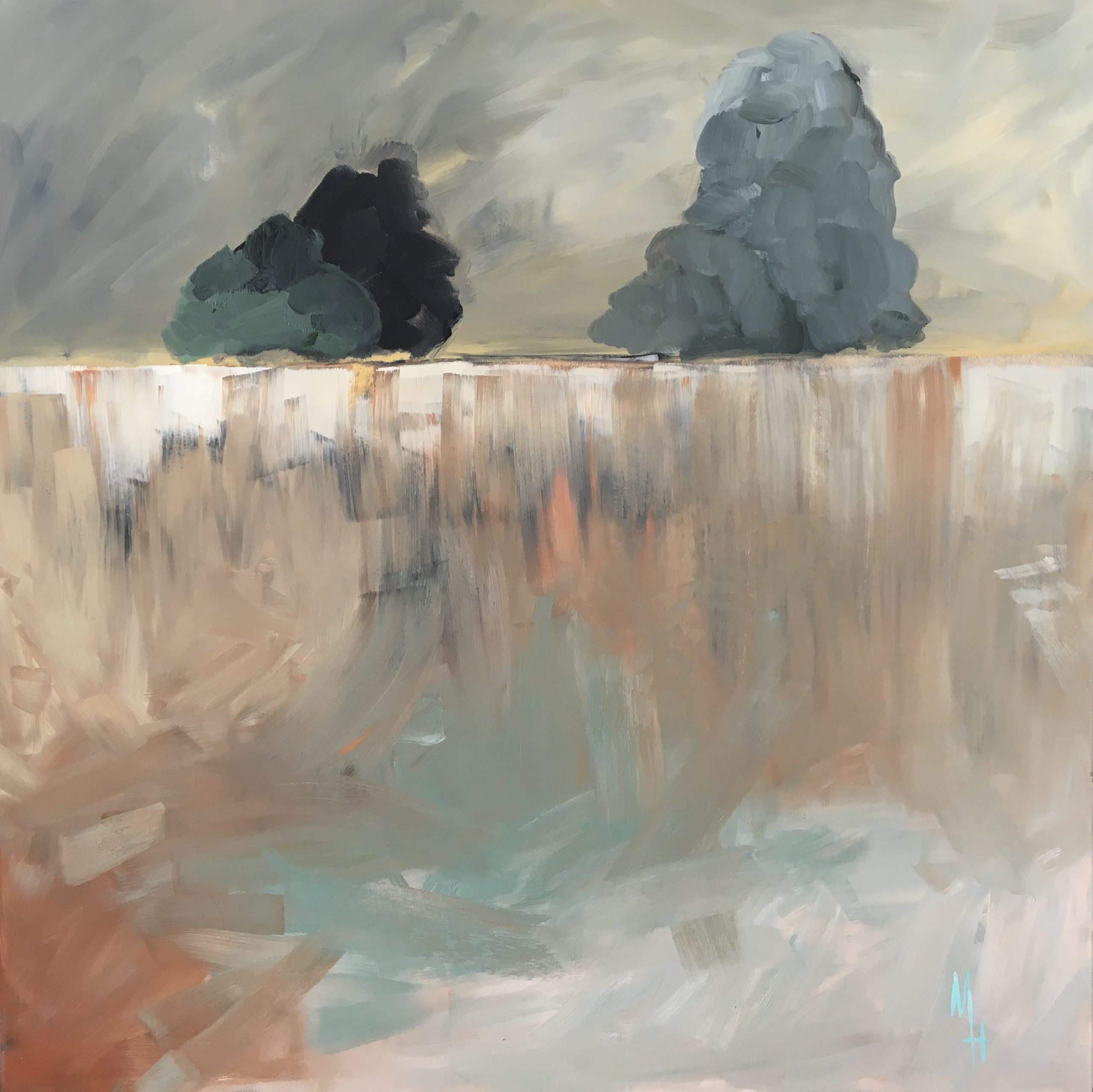 A sublime abstract landscape painted to take your mind to open fields and the sound of a peaceful breeze blowing in the grass.