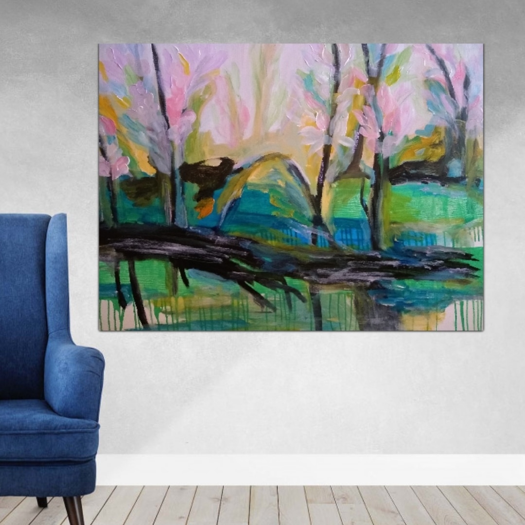 Sakura by Valeriya Master– abstract Floral mixed Media Artwork on stretched canvas, inspired by abstract visualisation of love and nature.