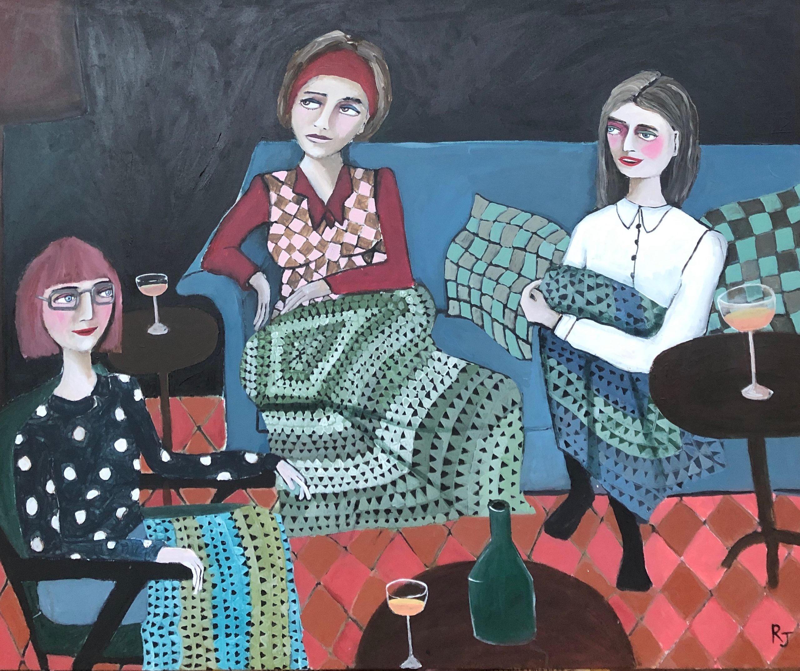 I hope that my art captures something true about the world — the beauty of the ordinary, the complexity of human interaction, the intensity of an emotion. My art is largely figurative, people and things, and I attempt to represent what I see and experience with a sense of appreciation and humour. My work is often colourful and illustrative and can tend towards the naive. It frequently has elements of fantasy about it. I like my art to tell a story, to prompt the viewer to think ‘I know exactly how that feels,’ or to inspire a sense of joy or longing or nostalgia.
