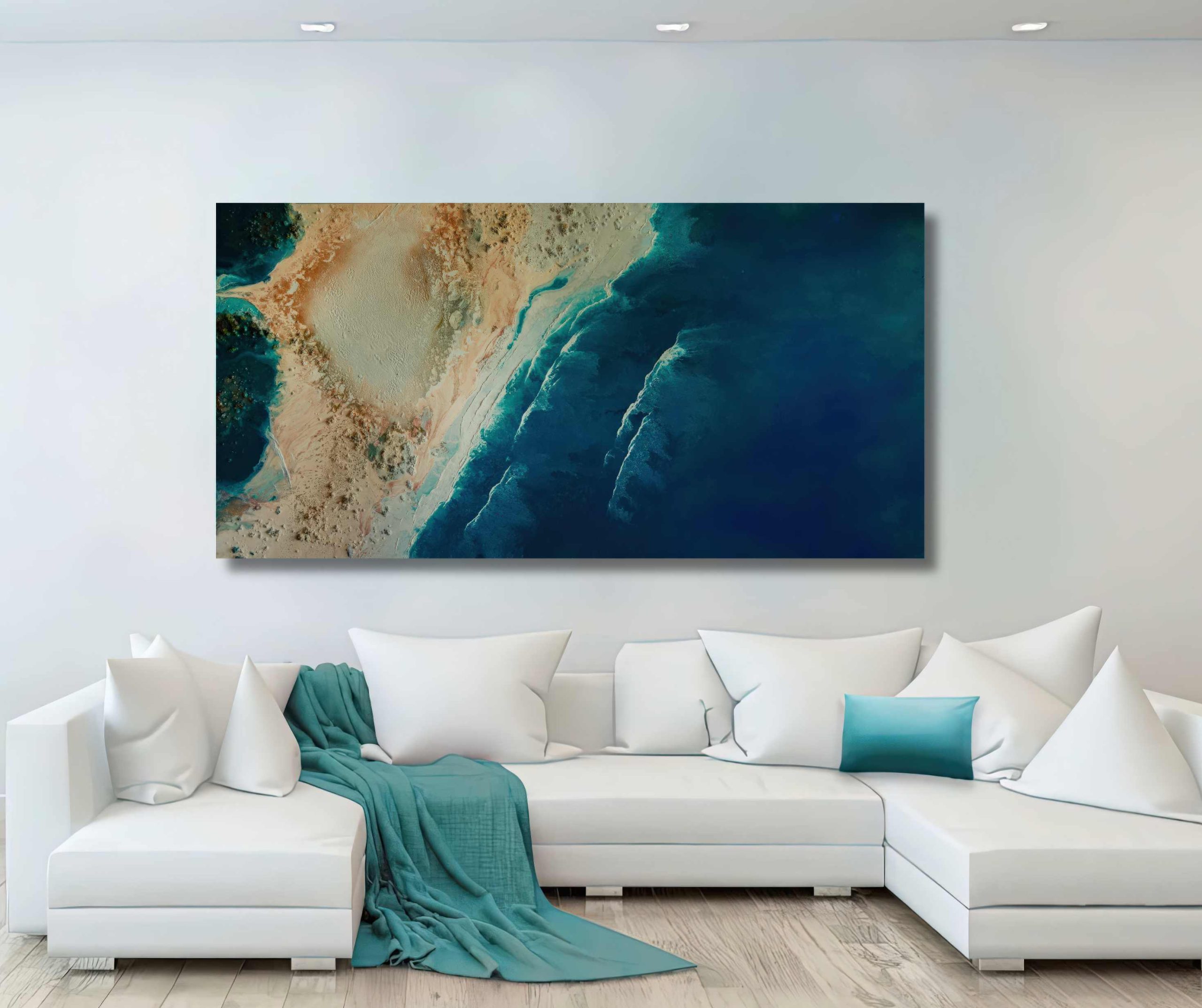 Signed on the side and ready to hang, Sand and Serenity brings warmth and tranquility to any space — from a modern coastal lounge to a bedroom retreat or entryway. It’s a statement piece that embodies the effortless beauty of the Australian shoreline — calm, luminous, and timeless.