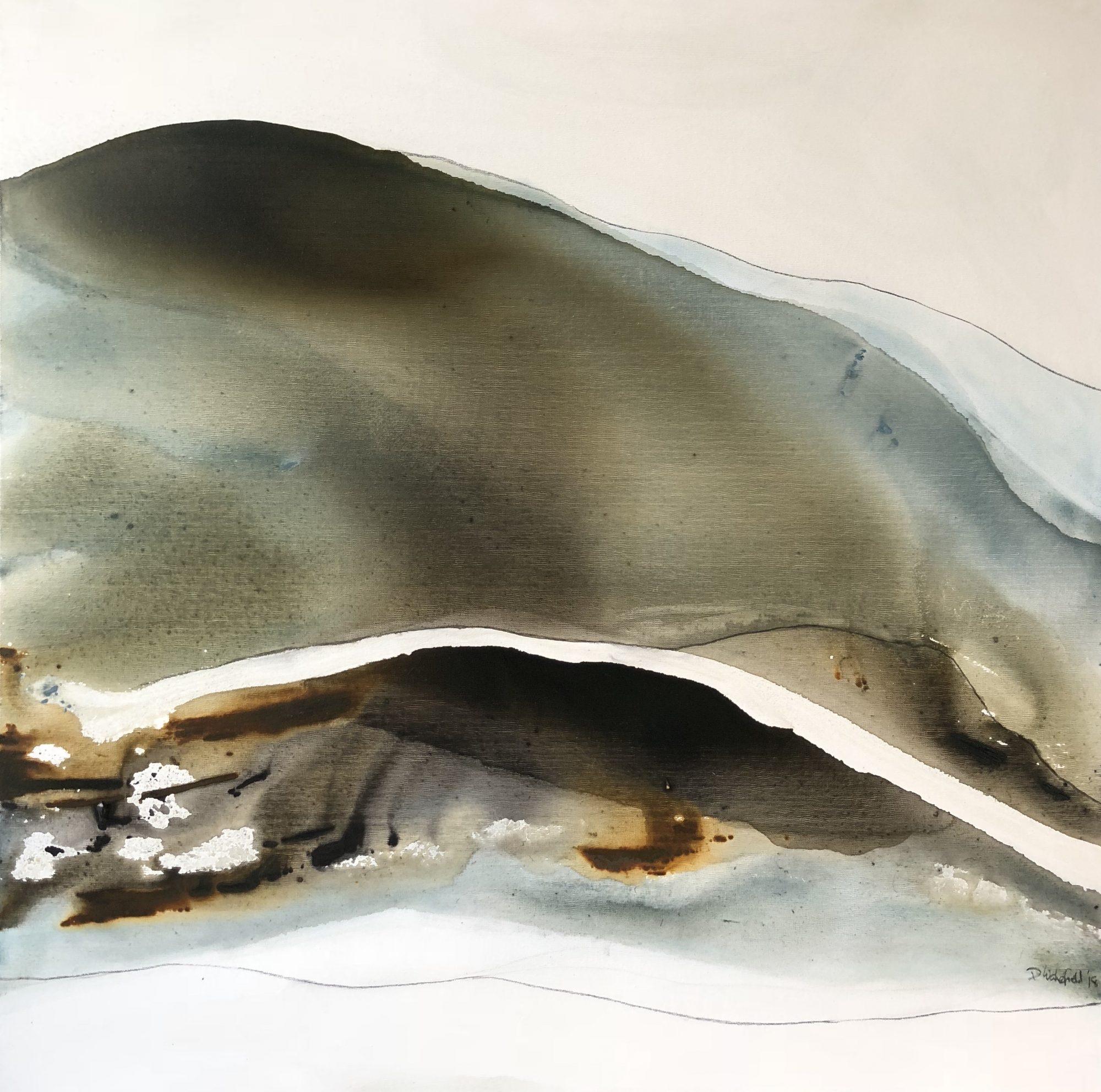 Sand Shadows 2 is inspired by the light, the colours and the natural beauty of the Noosa region of Australia. “What I love most about Noosa is the interplay of light. From the oceans to the clouds, to the river estuaries and the hinterland, this canvas unfolds before me every day and finds expression in my paintings”.