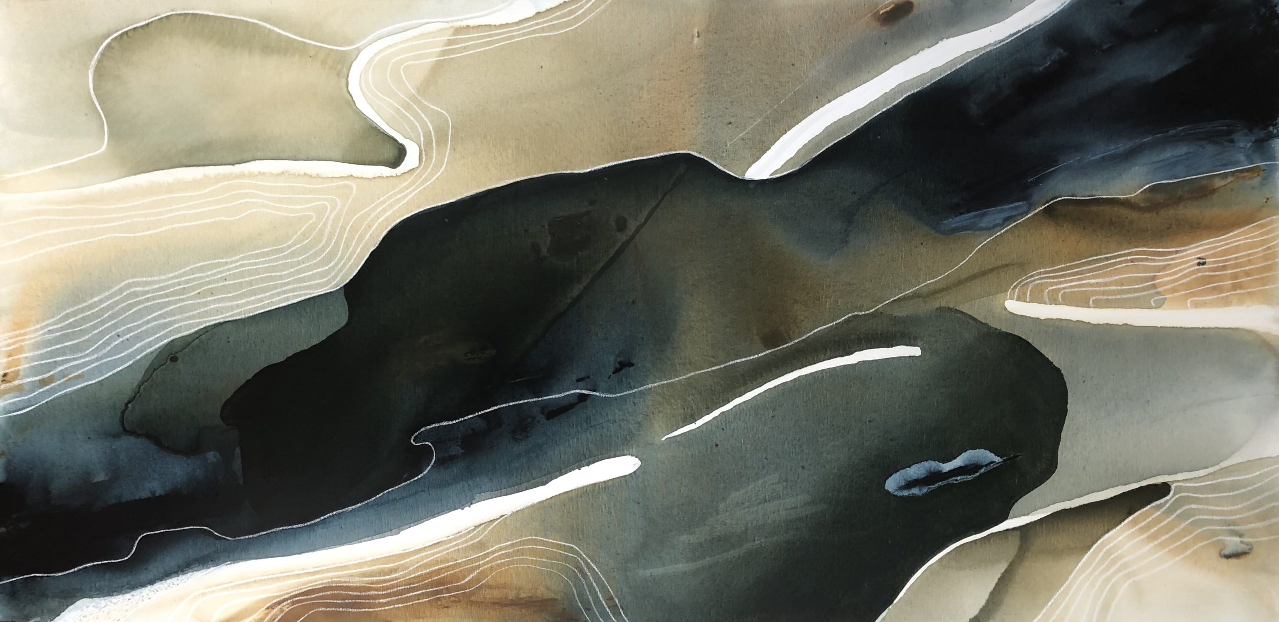 Sand Tracks is inspired by the light, the colours and the natural beauty of the Noosa region of Australia. “What I love most about Noosa is the interplay of light. From the oceans to the clouds, to the river estuaries and the hinterland, this canvas unfolds before me every day and finds expression in my paintings”.