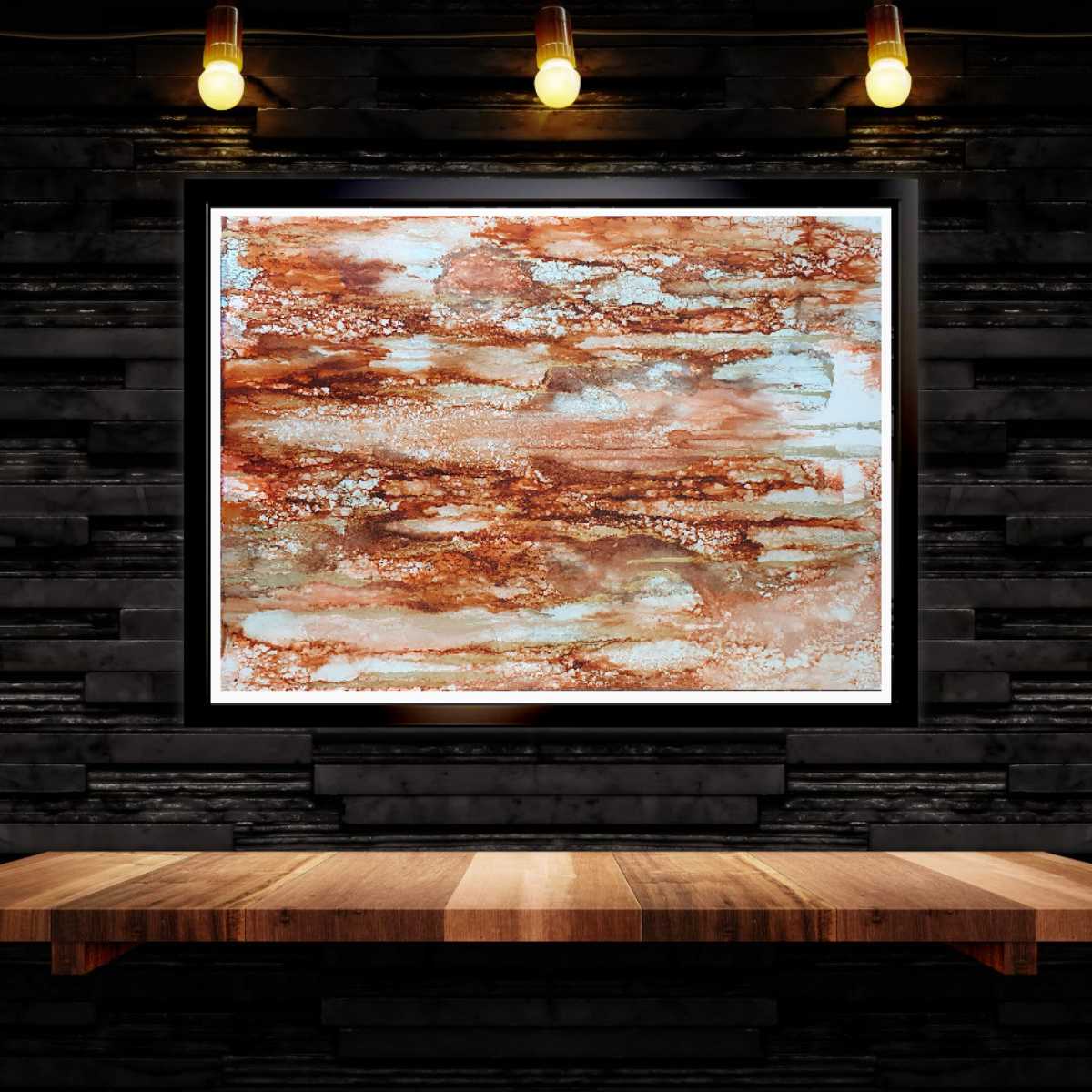 I love working with inks, they are almost uncontrollable to use with their watery consistency and how fast they dry, but the beauty I find working with this medium is you can reactive them just by adding alcohol and than the story can begin again. Layer upon layer using different techniques to achieve the finished piece.