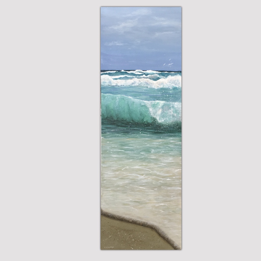 Having a fascination with our gorgeous beaches and oceans, I am totally in awe of the giant waves which crash into our shores. The energy each wave has as it tumbles and turns creating more speed as it scoops up more salty water. The thunderous sound as the giant “liquid mountain” makes its way to the shoreline dissipating into a frothy foamy carpet creeping up onto the hot golden sands beckoning us to dip our toes and have them covered in salty kisses.