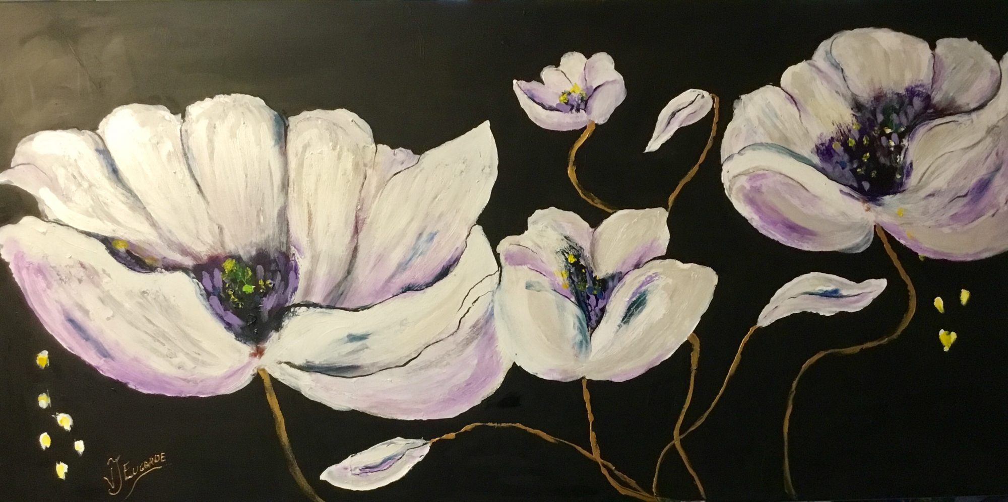 Big and bold poppies on a black Matt background make a dramatic statement.