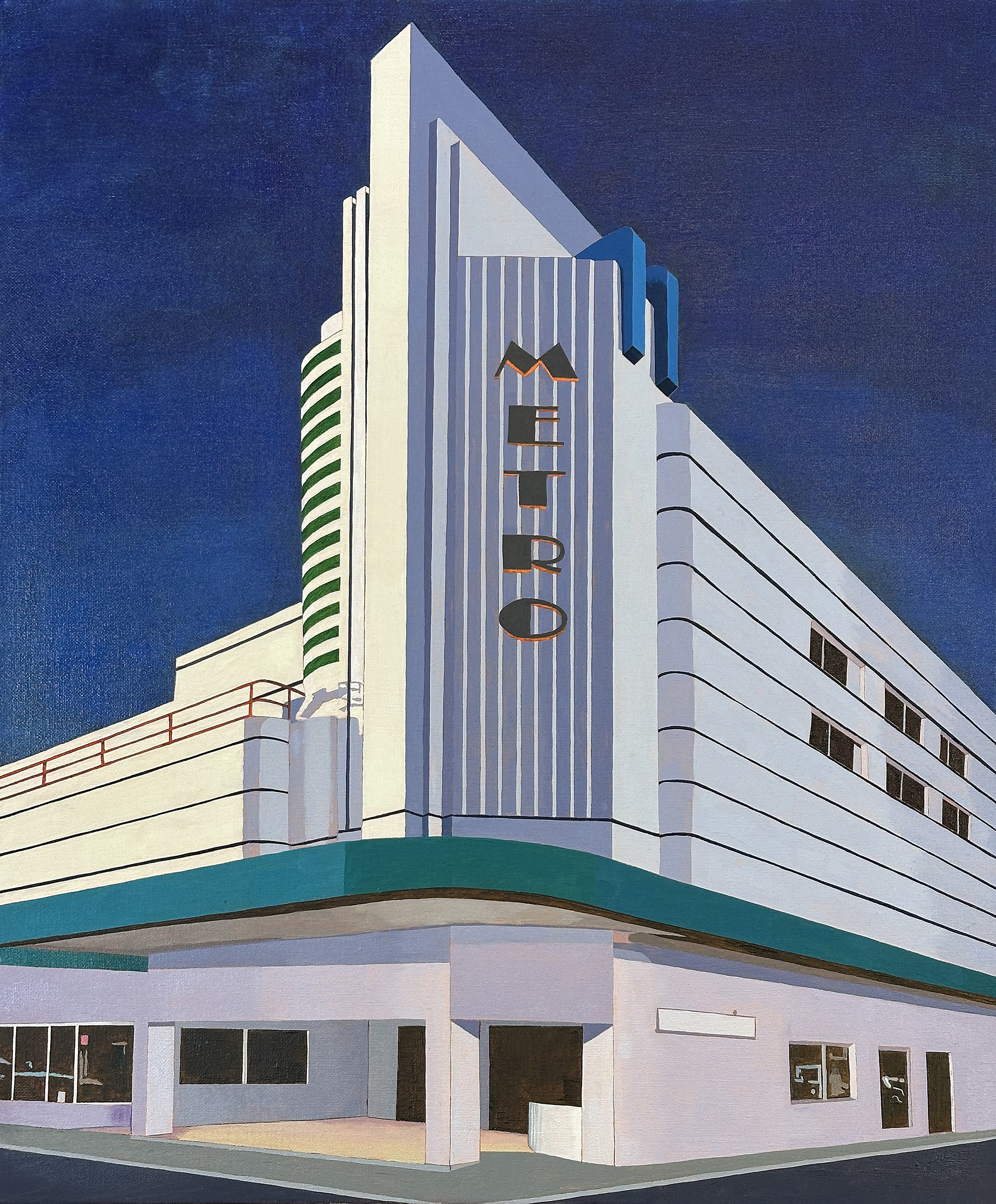 “Metro Deco” by Yianni Johns – This painting was painted specifically for the Art Lovers Australia exhibition “Emerging Voices.” It is the Metro in Sydney and has been the subject of potential destruction in order to build more boring apartment buildings. Let beauty reign keep our Art Deco buildings. Well that’s what I am trying to achieve with my series of Art Deco Architecture. Please enjoy them like I do. This work is an oil on canvas, 51cm x 61cm, ready to hang.
