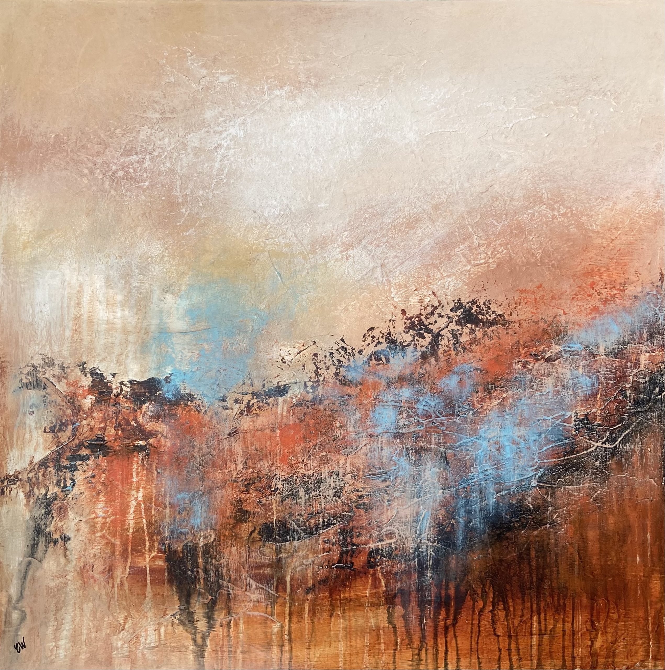 Scattered Light by Carrie Welsh is a beautifully textured abstract landscape. 90 x 90 x 2 cm. Acrylic on canvas, ready to hang. Frame not included.