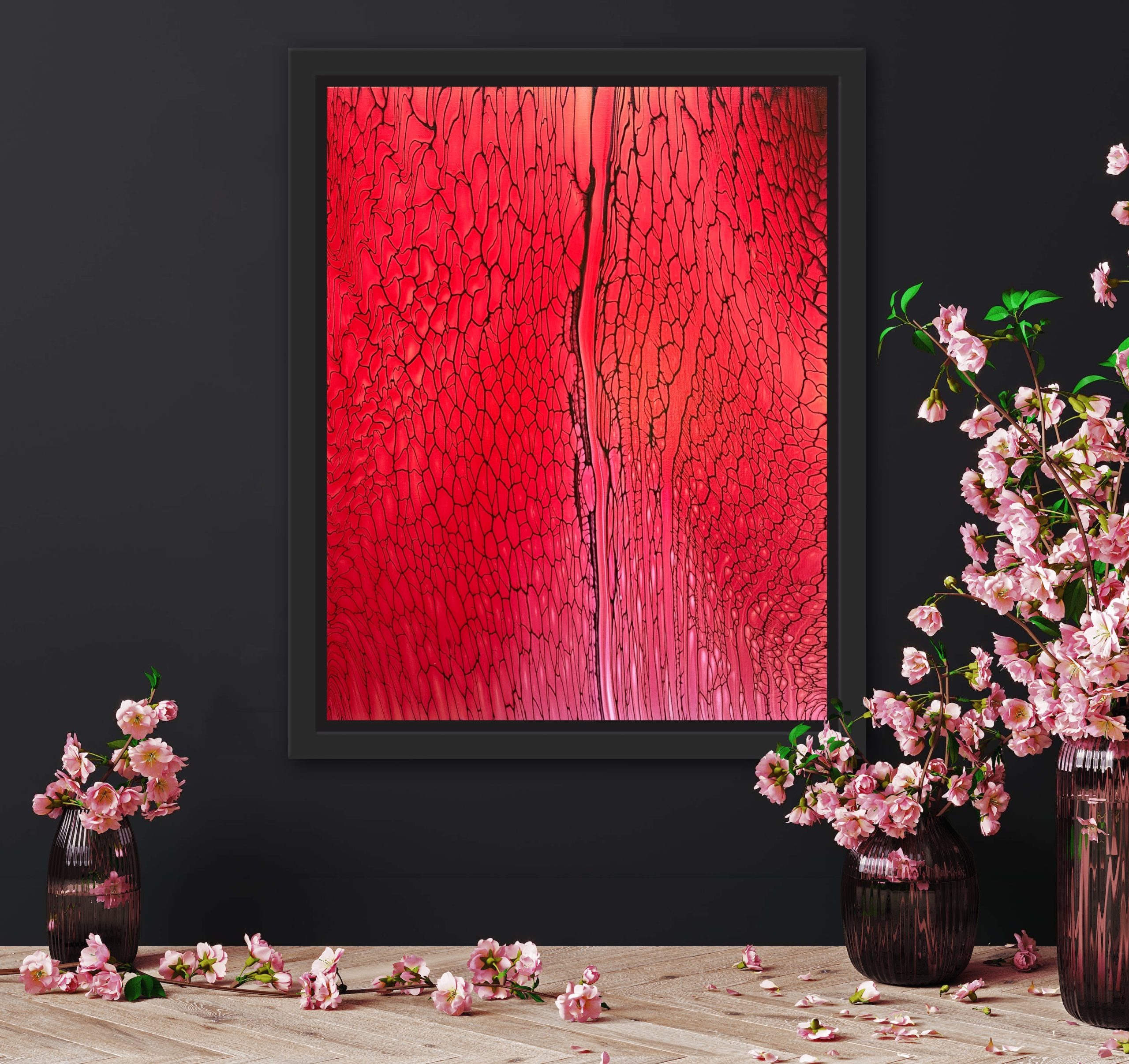 A scorched fire like painting, reminiscent of brightly burning wood, scorched earth and a cracking burnt surface. A dreamlike reflection of the Australian bushfire season, sweeping the land and unleashing new life.