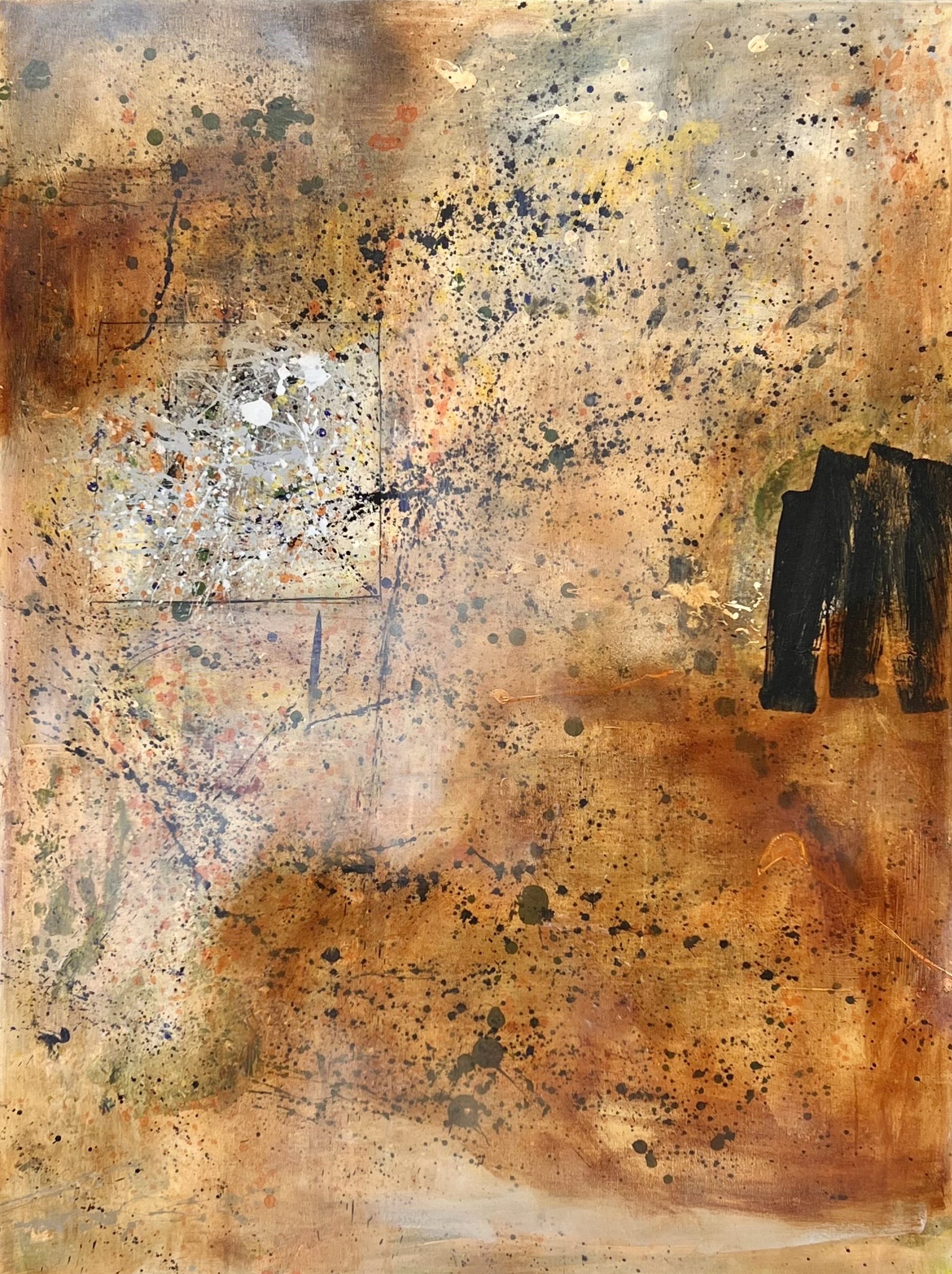 Composed with a blend of acrylic and natural earth mediums, this piece seamlessly balances organic textures with a contemporary sensibility. The intricate layers, built up through a refined process of glazing, wiping, and splattering, create a sense of depth and movement, making the painting feel both grounded and expansive.