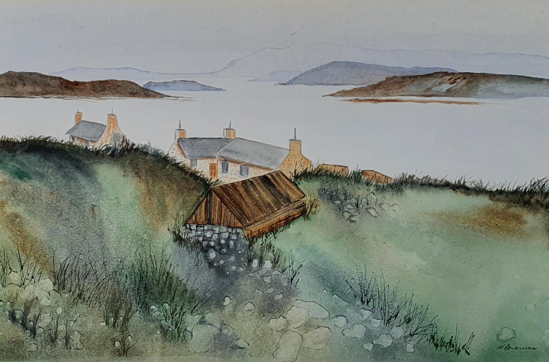 Scottish Farm is a watercolour painting by Heather Browne on quality Arches 300gsm cold pressed watercolour paper.