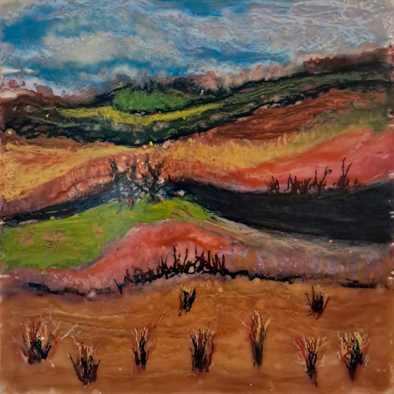 Original artwork using acrylic paints applied with trowel, hands and brush on to stretched canvas. (Unframed).