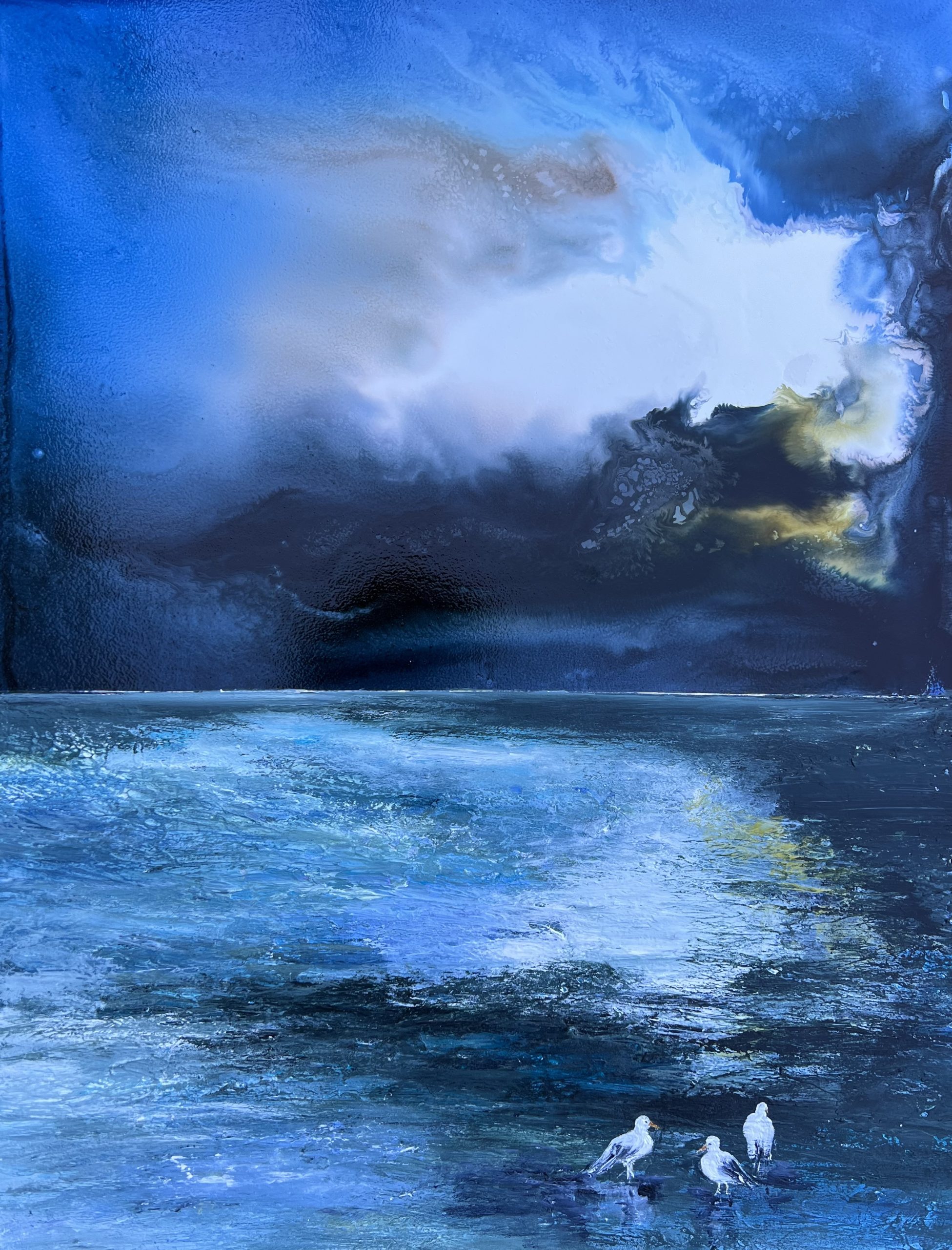 This painting comes from beautiful Tassie with its raw untamed sea-shores. Walking along and picking up seashells I’ve never seen before….. The poem is by Walter de la Mare, 1897