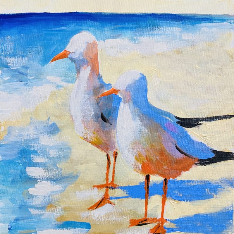 The acrylic painting is sealed with satin varnish. The back is wired ready to hang and the edges are painted black. It is signed and ready to hang.