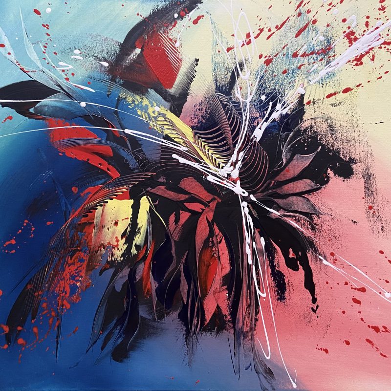 Acrylic paint, acrylic ink, spray paint and acrylic ink pens.