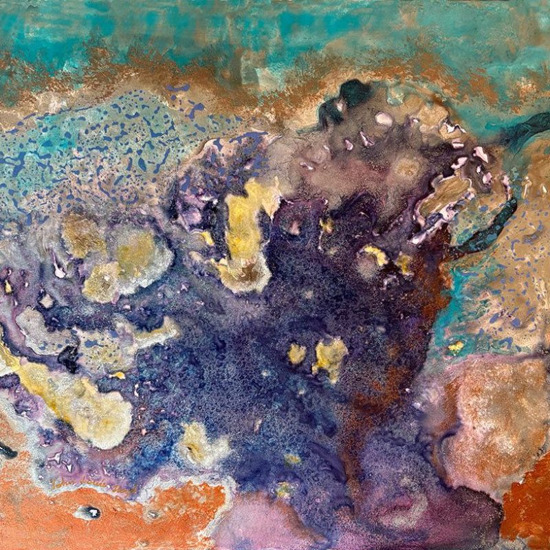Acrylic and copper leaf on stretched canvas
