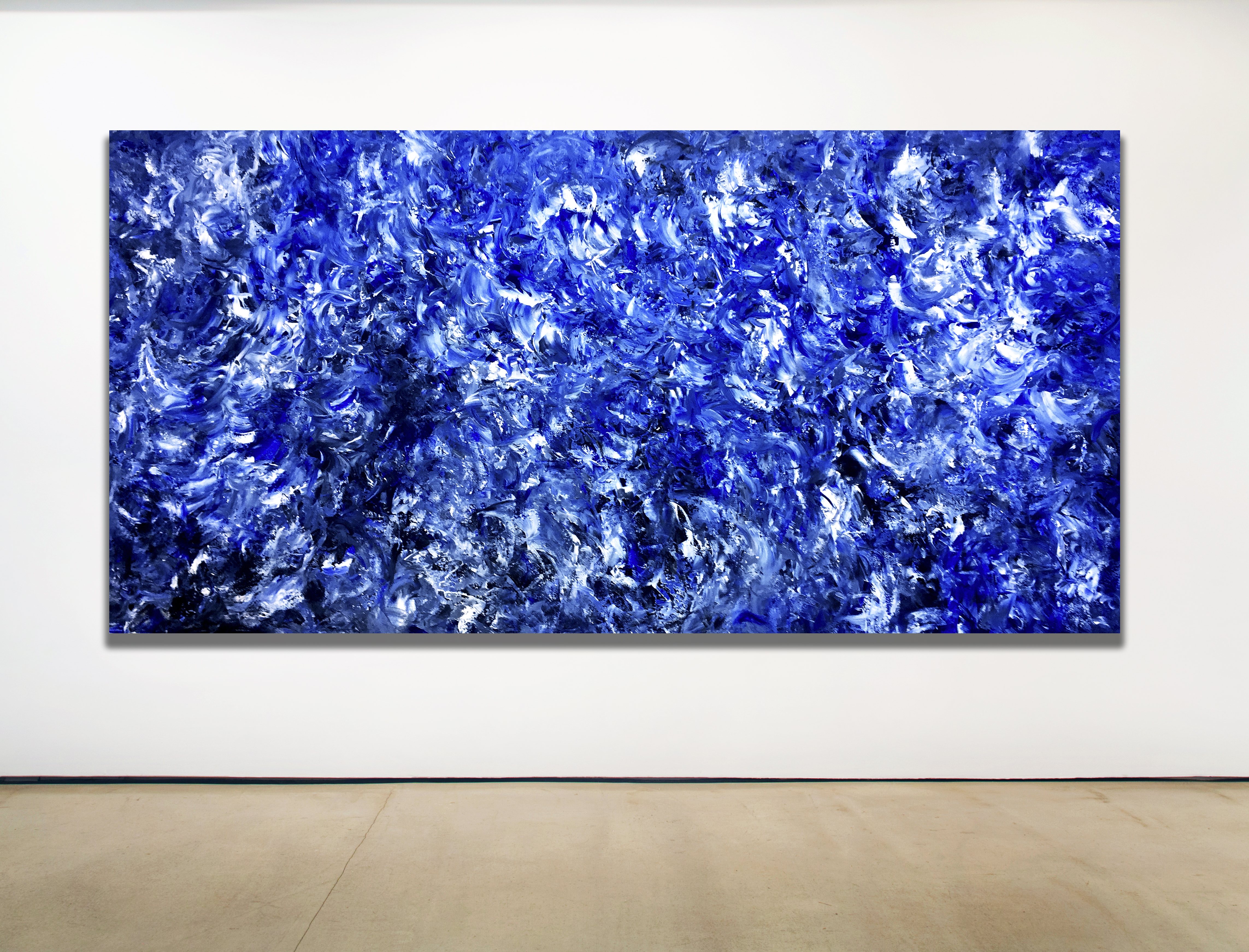 This work is painted on 12 oz gallery canvas and has been sealed with varnish. The canvas is hand-stretched onto a frame is 106 cm in height by 213 cm in width.