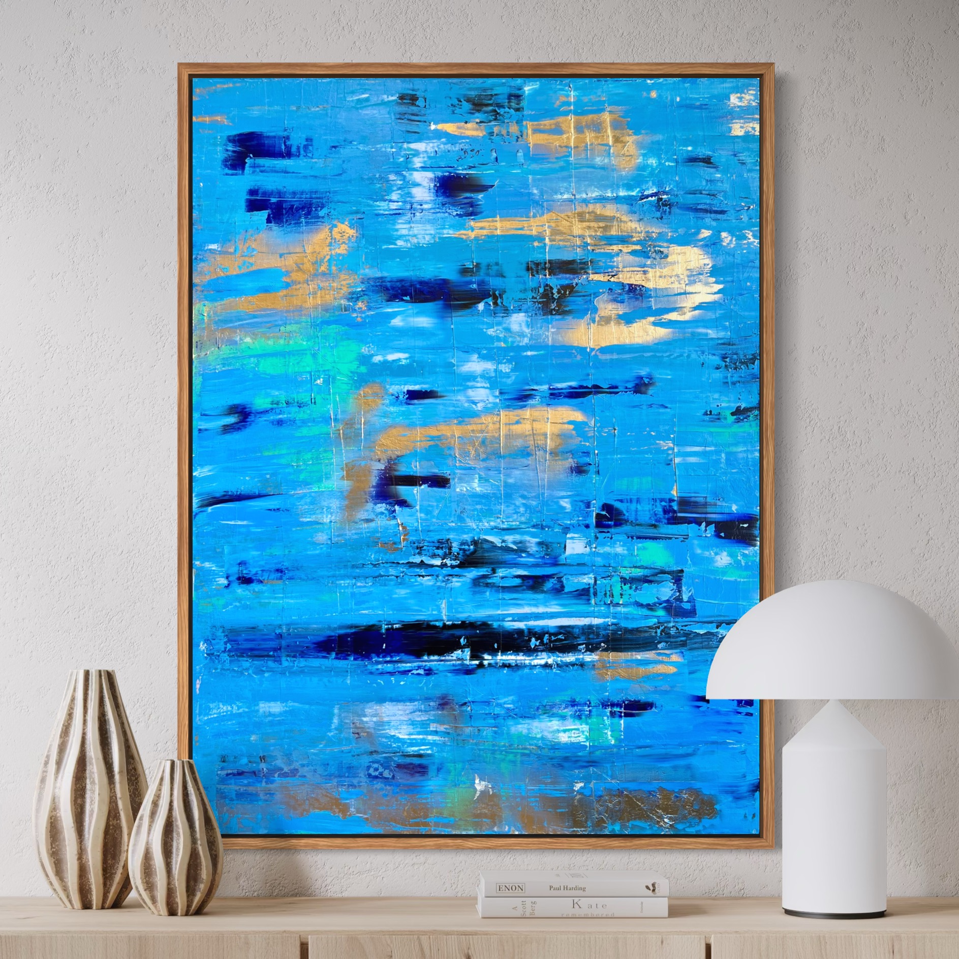 – Stretched artist quality canvas with internal wooden frame.