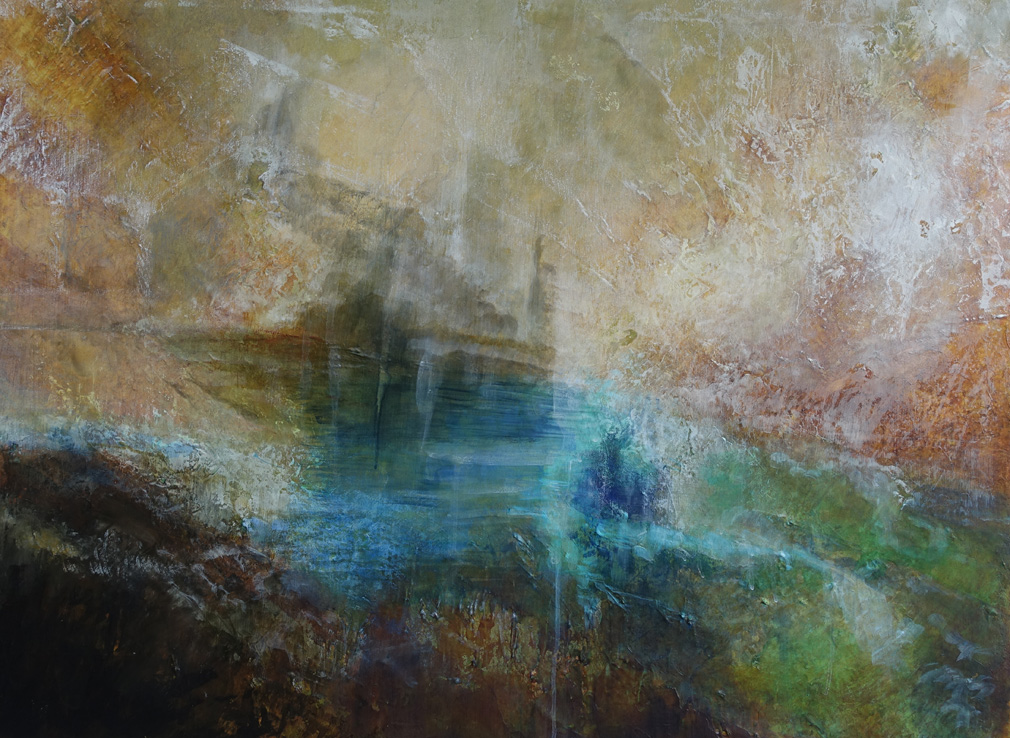 Original contemporary abstract seascape painting on canvas: H76 x W101 x D3 cm