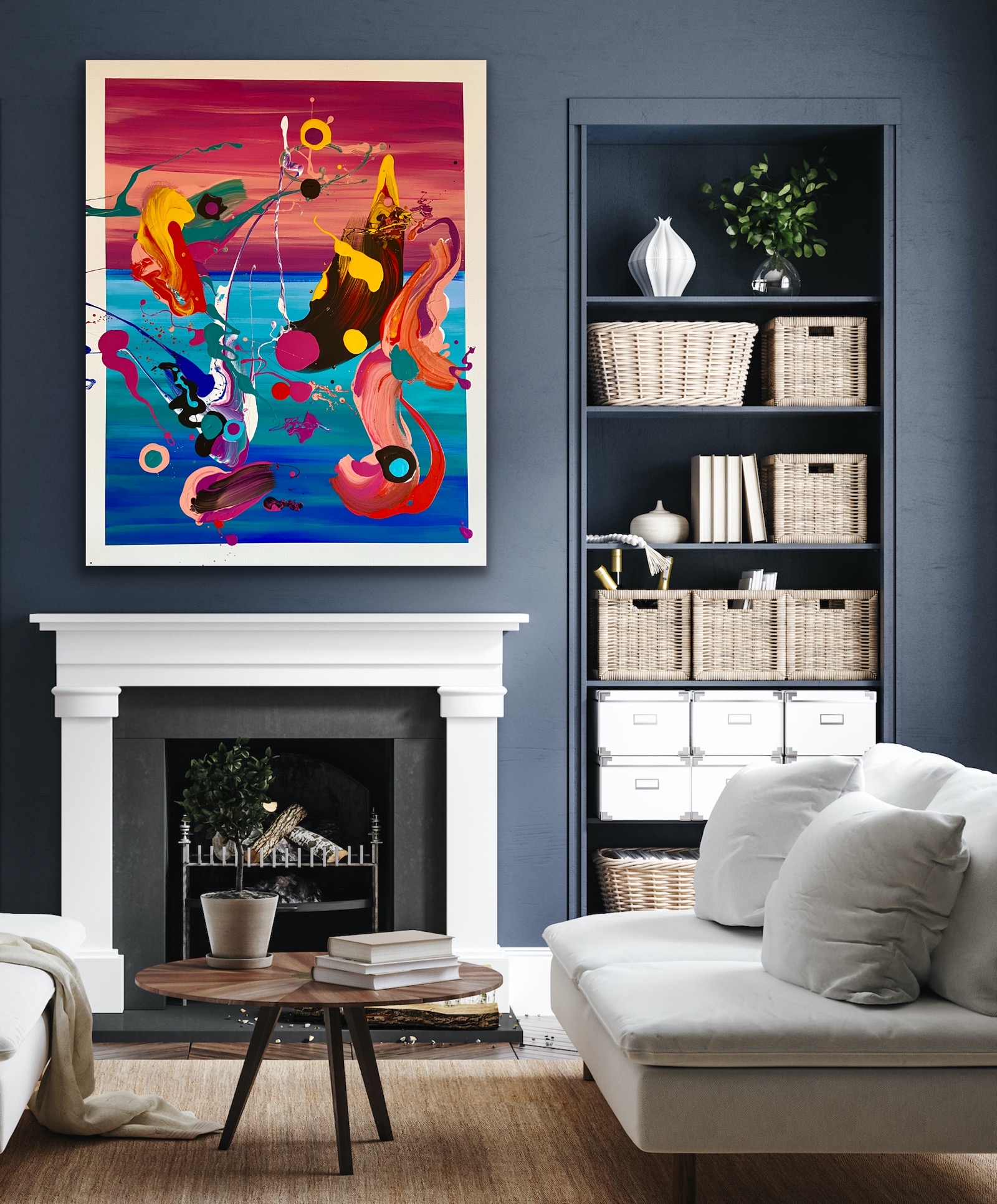 Please note this an original painting on thick edge canvas and not a print, an illusion is created with the white painted borders.