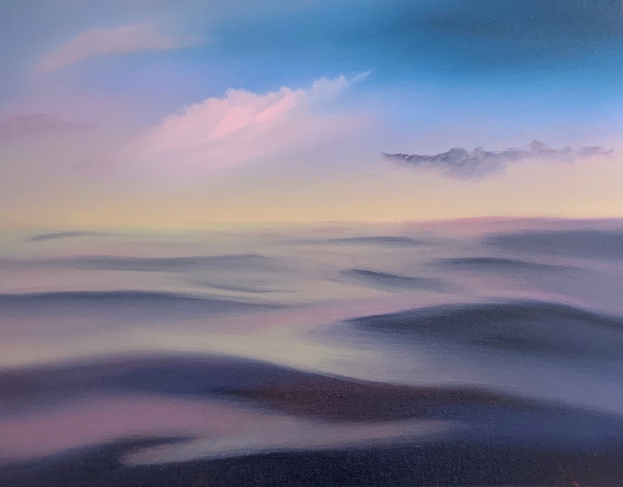 Seas the Day – By Alanah Jarvis – My favourite way to start the day is an early start, a quick dash down to the beach with my paddle board to become totally immersed in these views. The best way to set myself up to seize the day. Framed in Tasmanian Oak, this original artwork is made up of many layers of oil paint on a premium canvas & shows different shades of light & depth that dances over the waters surface.