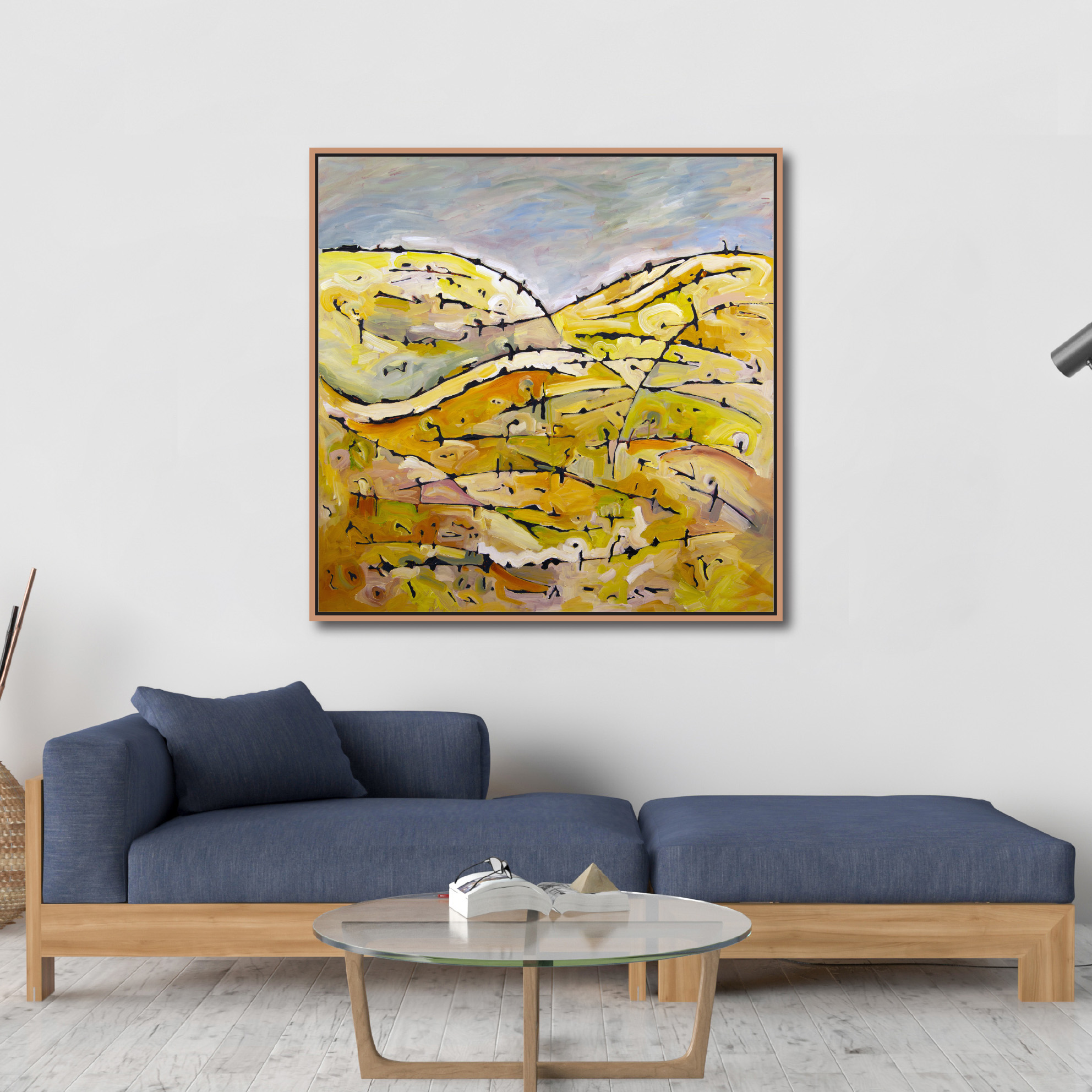 This beautiful contemporary abstract painting draws inspiration from the landscape around Michael’s home in Central Victoria and is featured in Scotty’s house on The Block 2022.