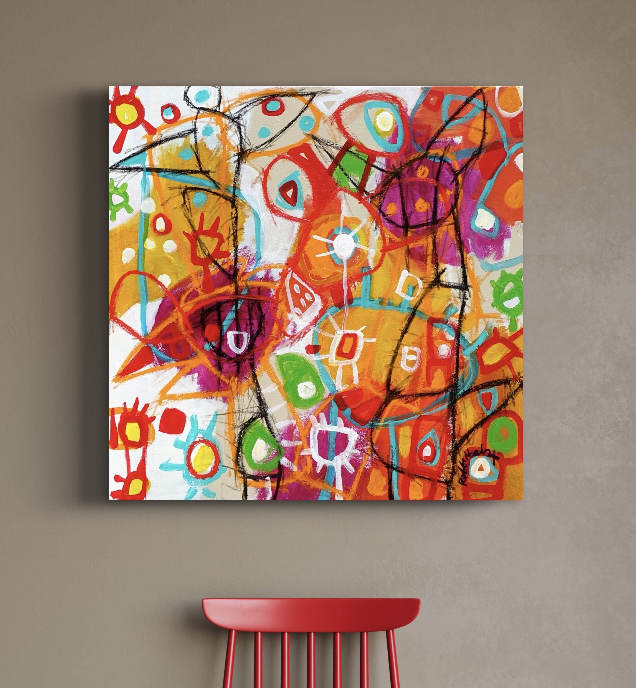 This work is oil and acrylic on 61 X 61 cm on Luca Premium Professional Canvas, stretched onto a kiln dried frame, wired ready to hang, signed on the front and sent with an artist cv and certificate of authenticity.