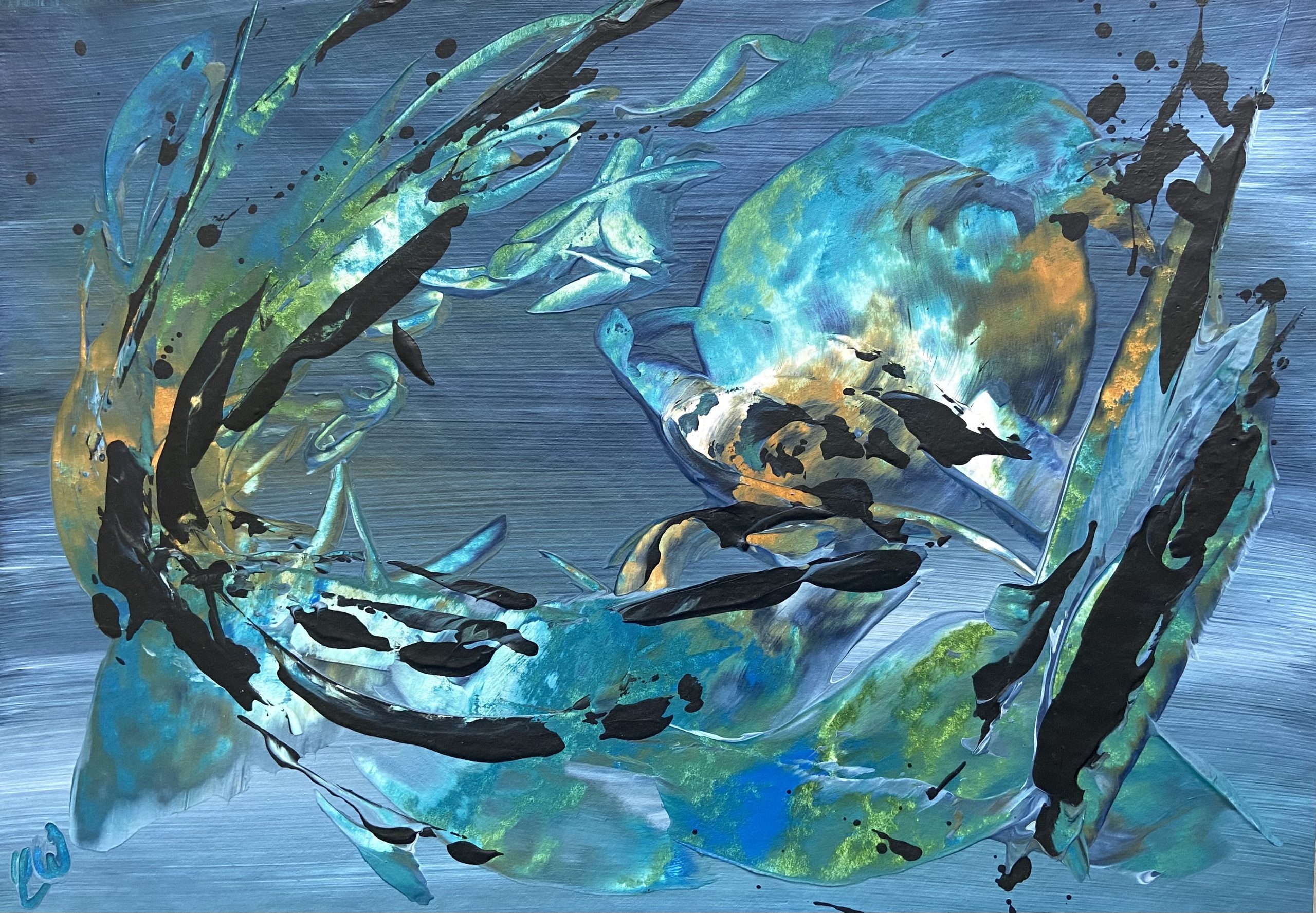 A beautiful abstract piece full of expression. Some images show what this piece looks like framed. Frames not included. 21 x 29.7 cm (A4 size) Acrylic on paper. Requires framing.