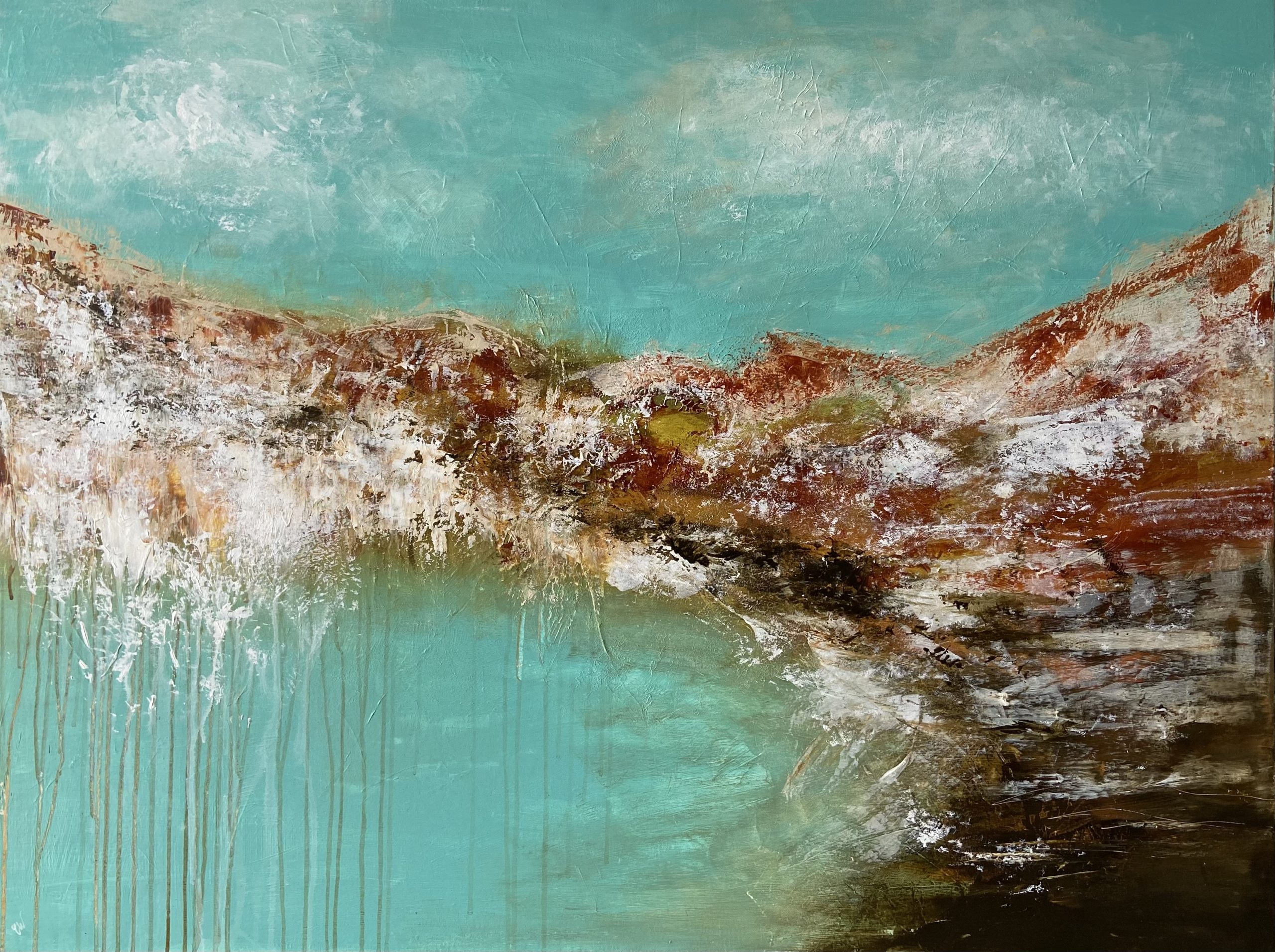 Seeking Summer by Carrie Welsh is a beautifully textured abstract landscape/seascape painting.