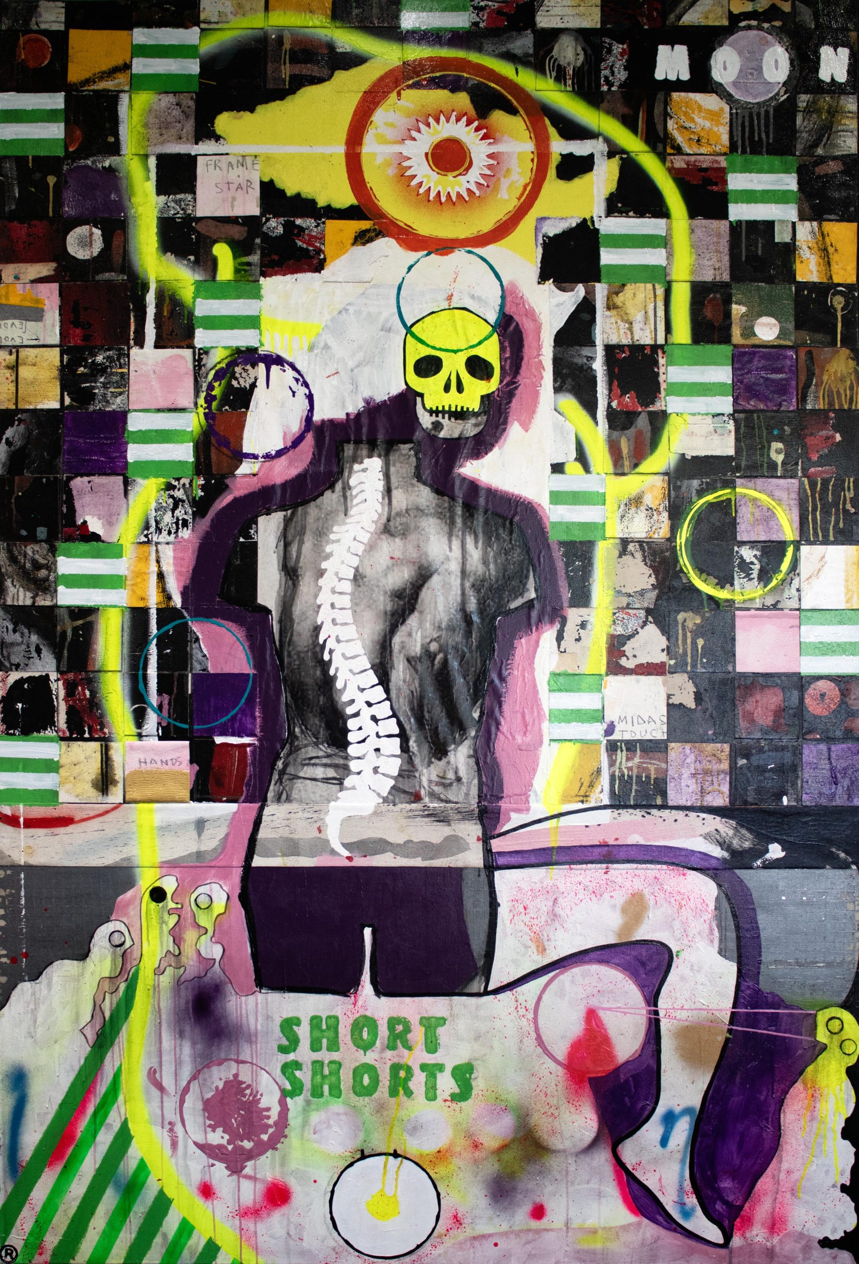 With layered textures and shifting forms, the painting captures the chaos of being caught between extremes—do you surrender to the sun’s blinding energy or lose yourself in the moon’s moody bassline? One thing is certain: neither DJ takes requests, and the party never really ends.