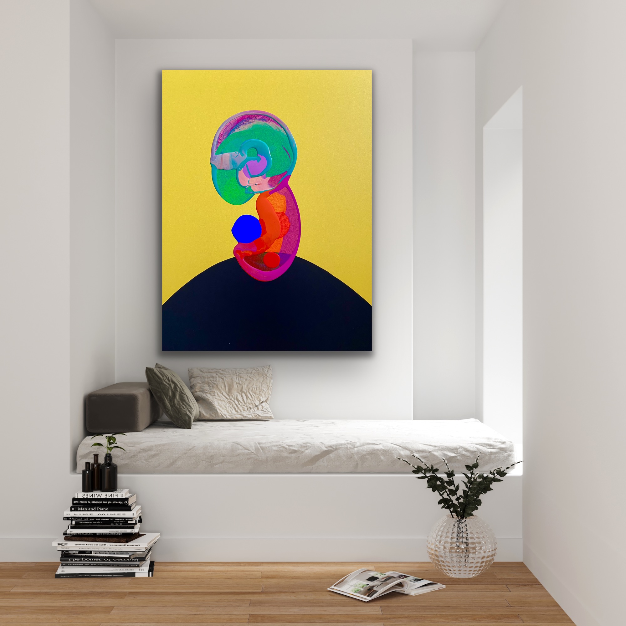 Selfie 014 by Jonathan Redmayne. A New abstract portrait action painting that captures the essence of the current climate…a powerful piece with beautiful brush strokes . Dynamic colours exploring shape, form, rhythm and movement. Painted on 2nd March 2022.
