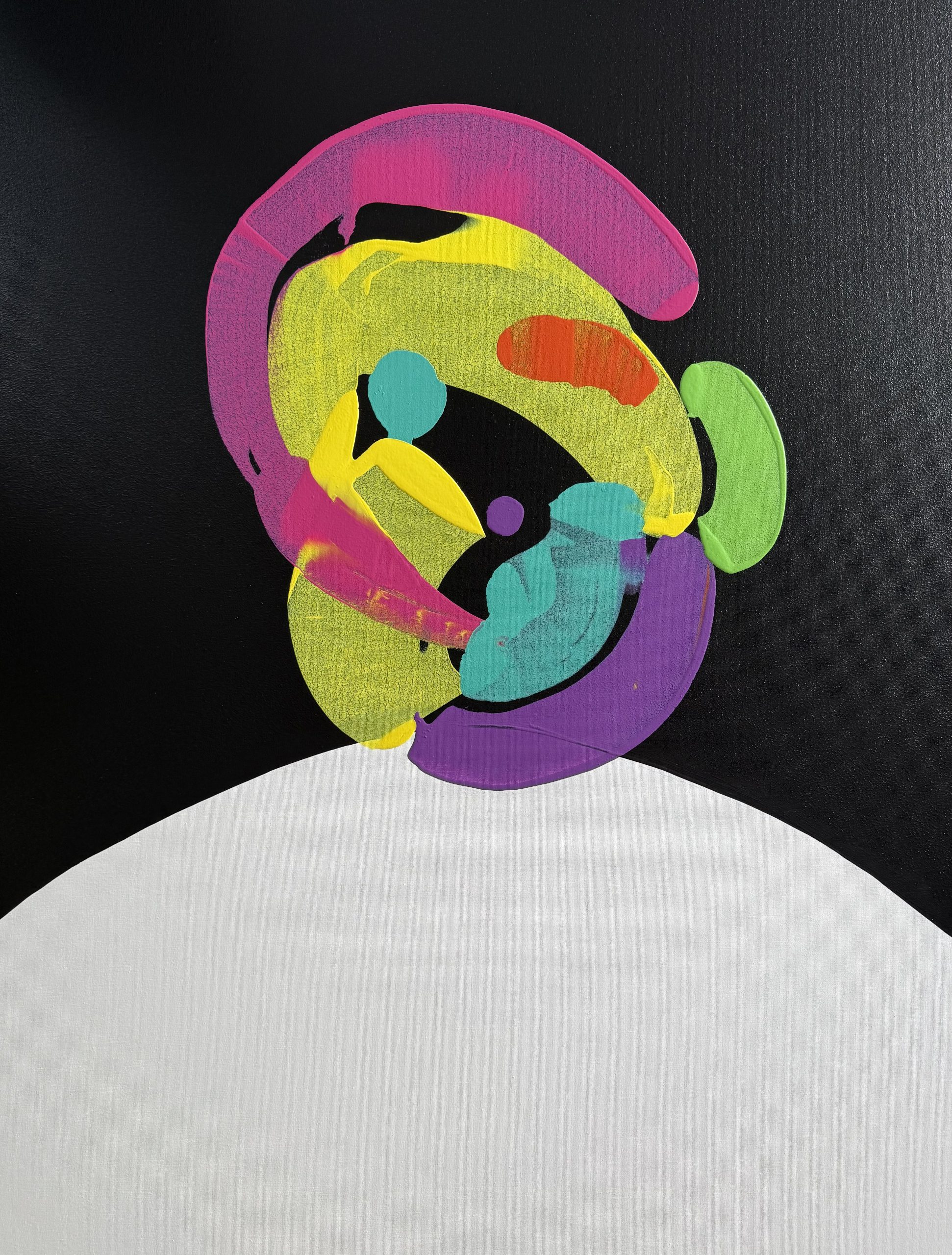 Selfie (Five) 2025 by Jonathan Redmayne – My new piece Selfie Four studies the notorious selfie. The selfie is an instant communication of where we are and what we are doing. Unlike traditional self portraiture, selfies are spontaneous, casual, distorted and sometimes carefully staged. Selfie Four explores this very idea. Nice statement piece at 122×92 on premium gallery thick edge canvas.