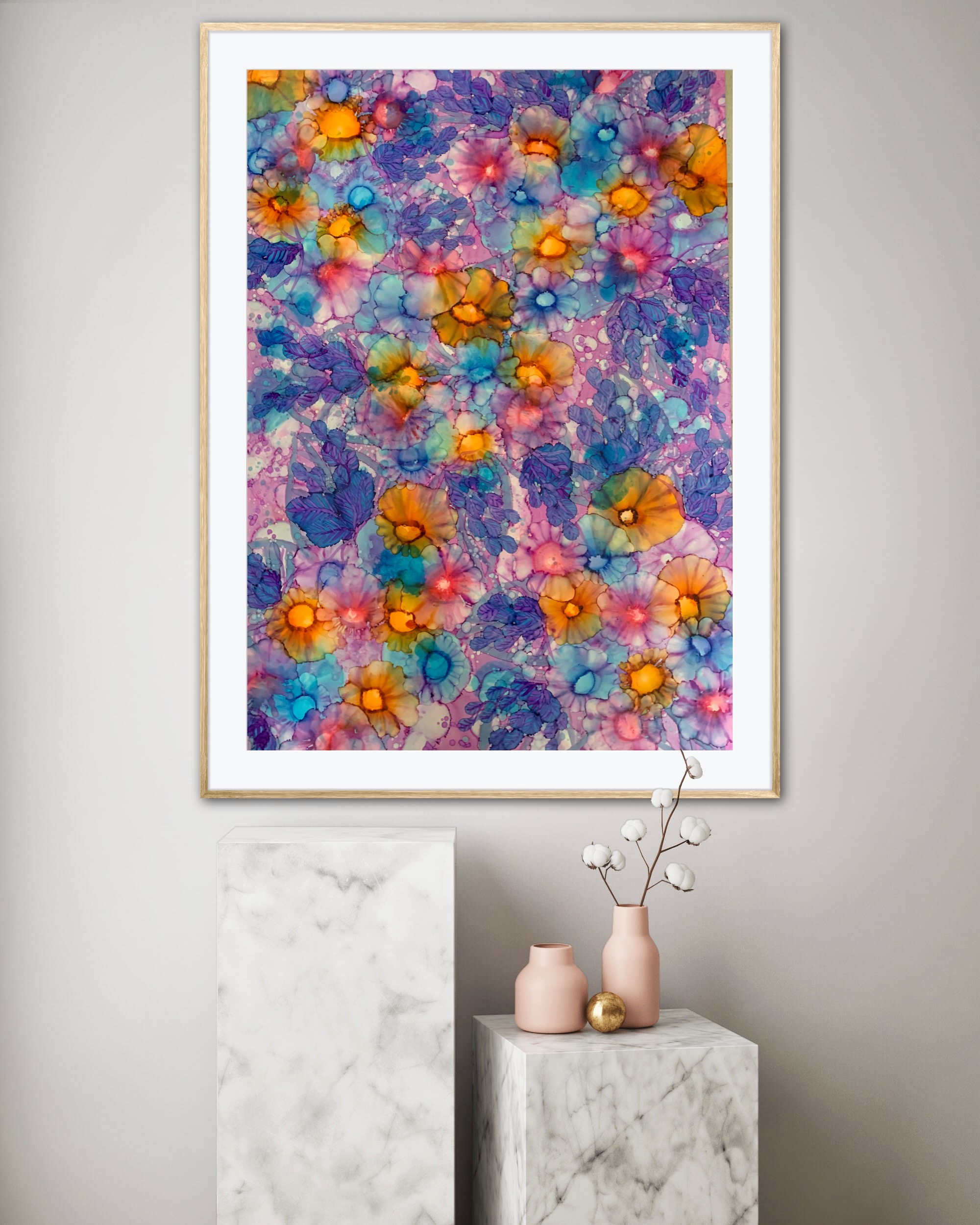 Original unframed 65 x 91 cm Alcohol ink yupo paper sealed with high grade varnish and UV spray.
