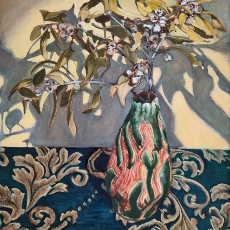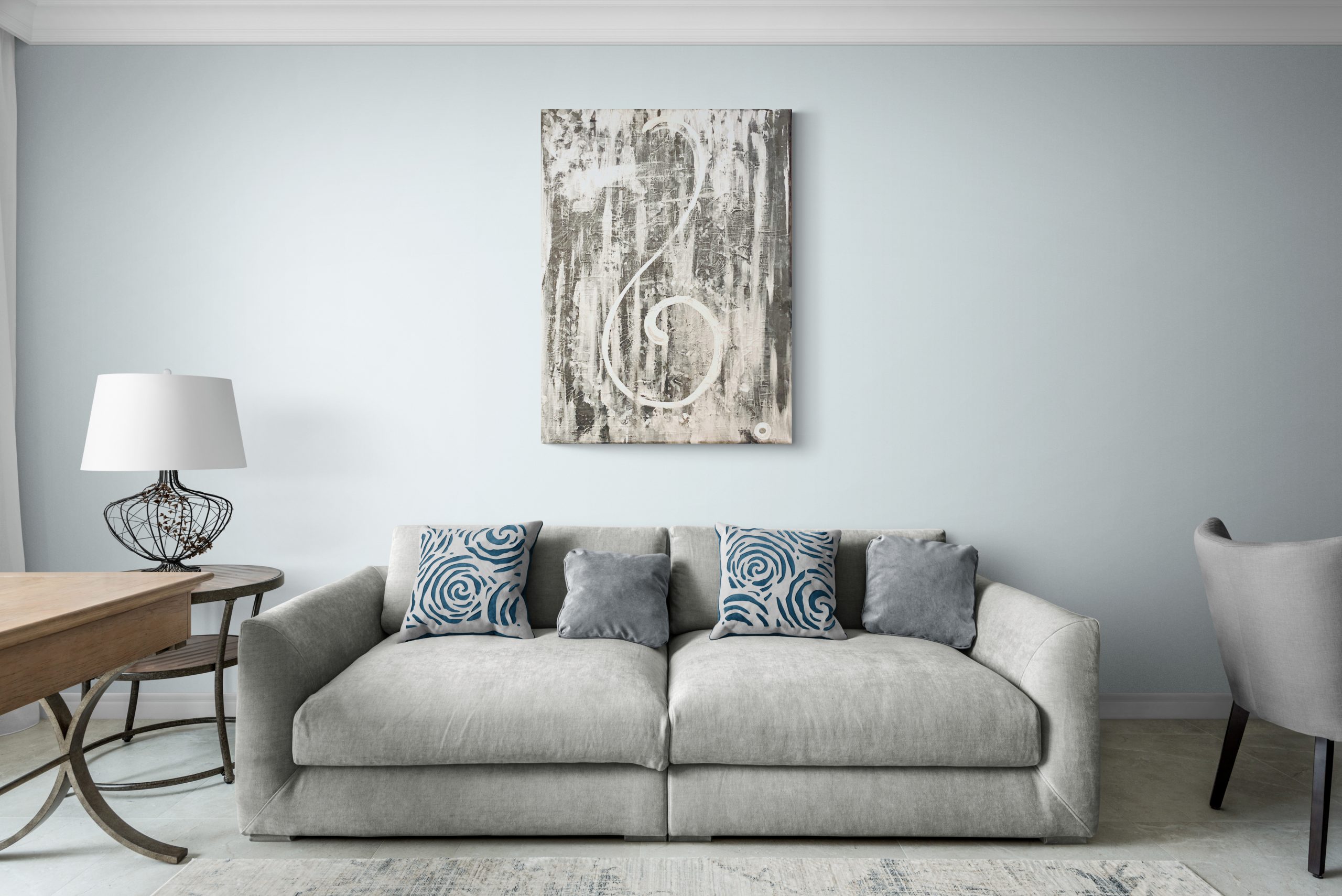 An energetic capture of life, love and flow. Heavily textured with sacred inscriptions and metallic accents.