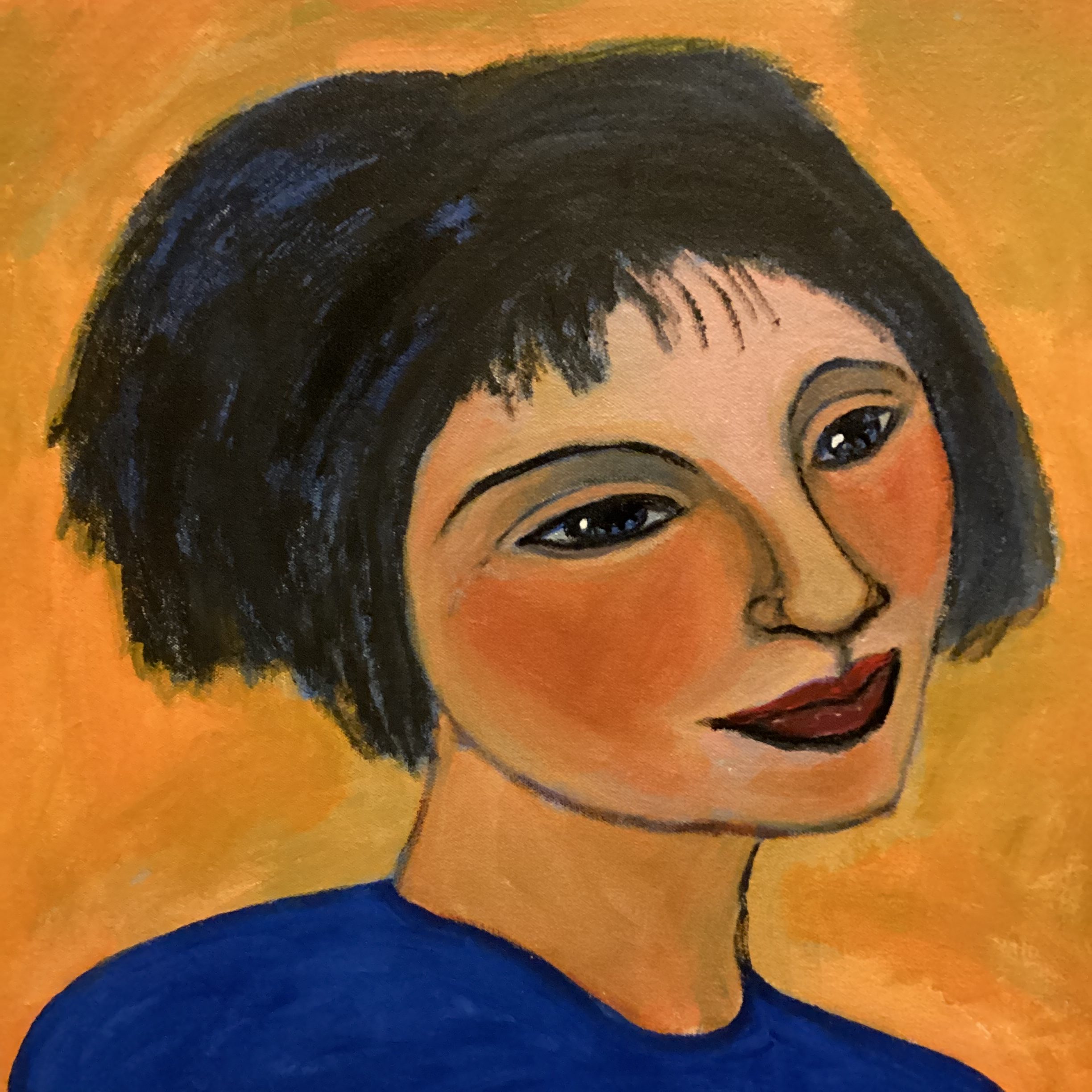 Serene is a painting by Margaret Connell.It is the image of a young woman who has a pleasant serene expression on her faces. Although not an exact portrait , it is rather from a recollection of some one I have encountered in the  past .It’s as if a lifetime memory of encountered faces are stored in the mind’s templates and these guide me through the creation .  I love to use bright colours when painting