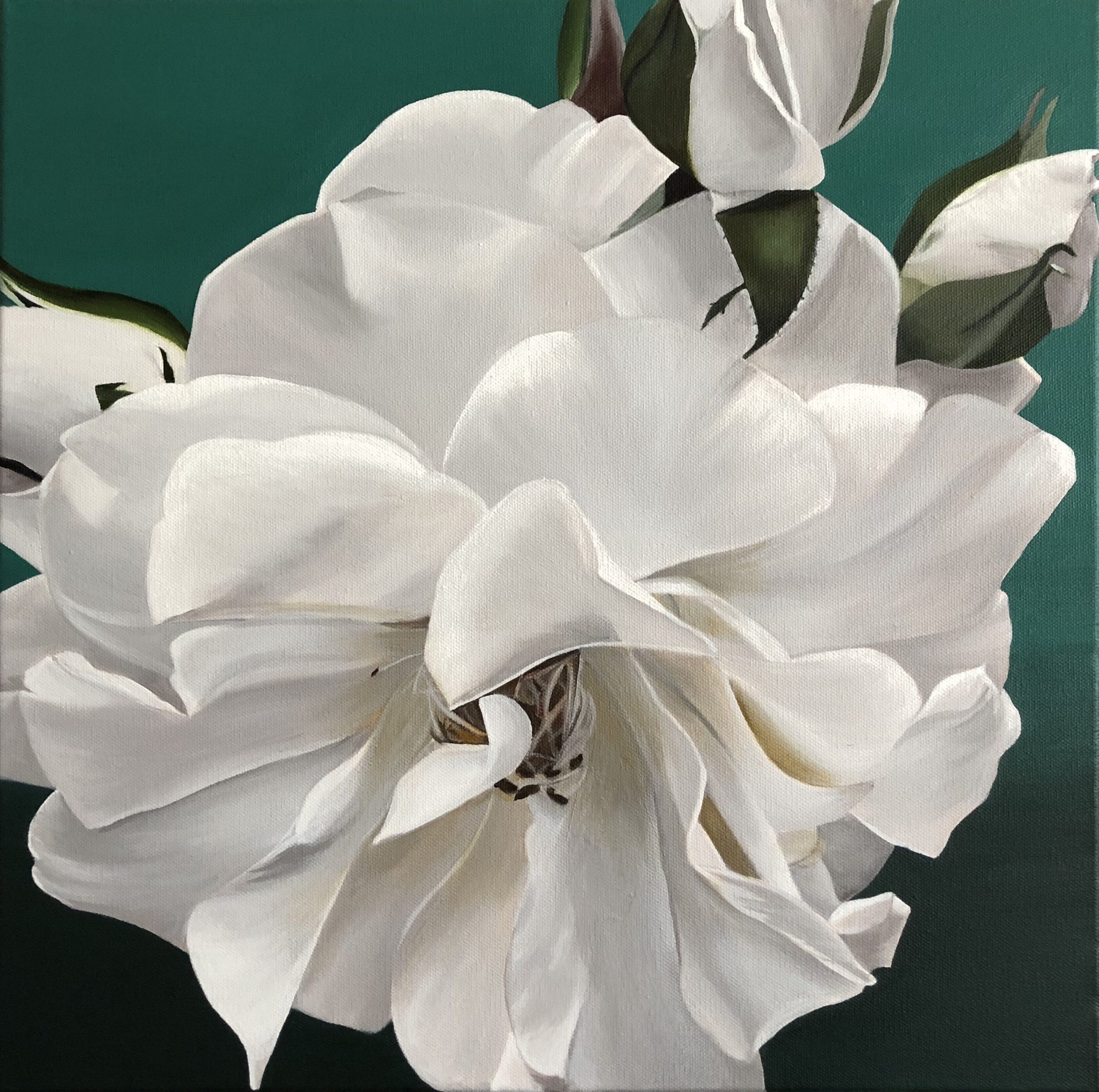 Oh the white rose! Every now and again I have the irresistible urge to paint a white rose. My favourite flower and the simplicity of the pure white version is a magic combination. When I paint a white rose it always makes me feel calmer and more at peace with the world, hence the name of this little one, Serenity.
