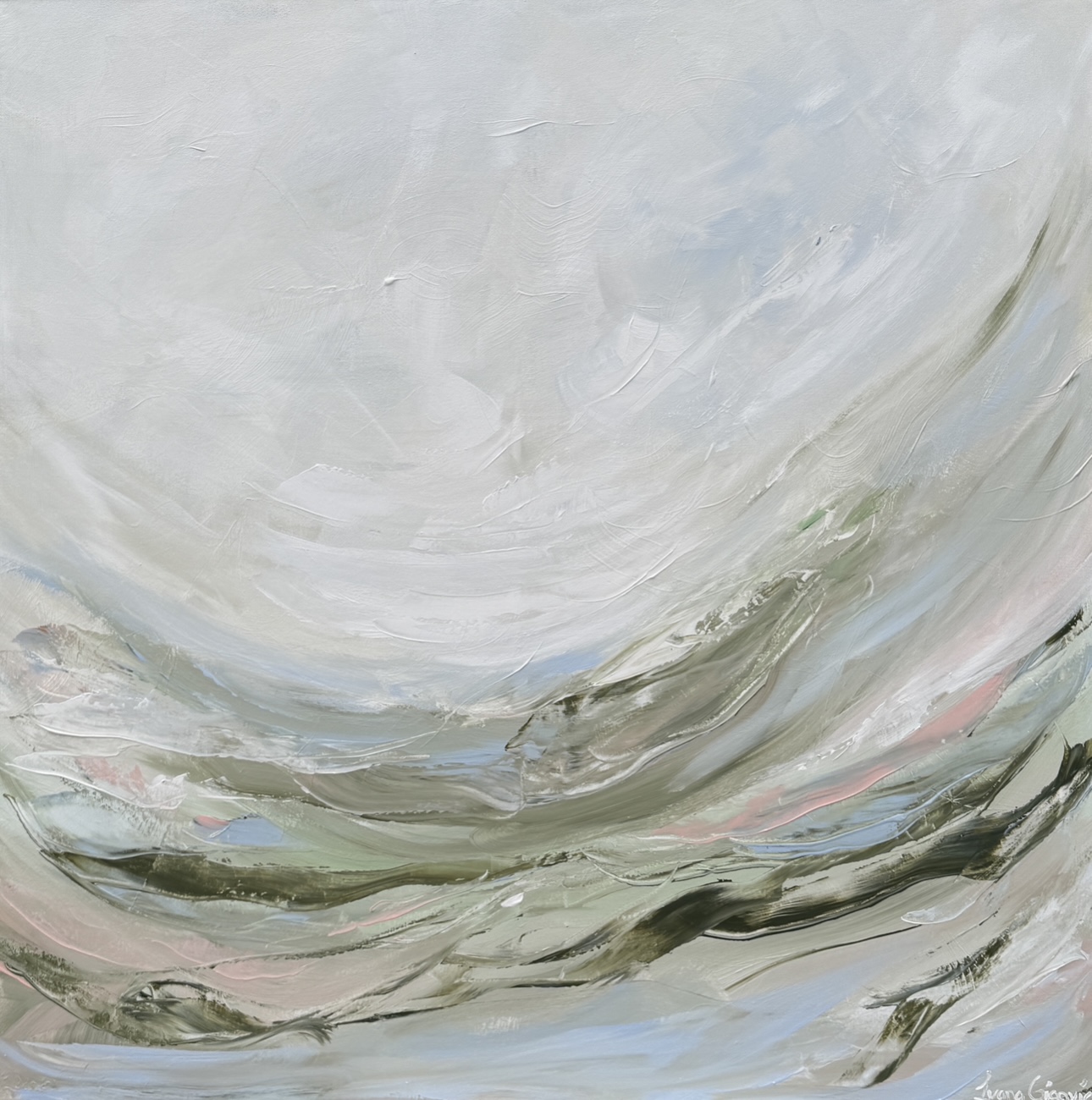 Bathed in soothing pastel greens and blues, this stunning piece invites you to immerse yourself in the beauty of nature’s most calming hues, where the boundaries between sea and sky blur into a seamless dreamscape.