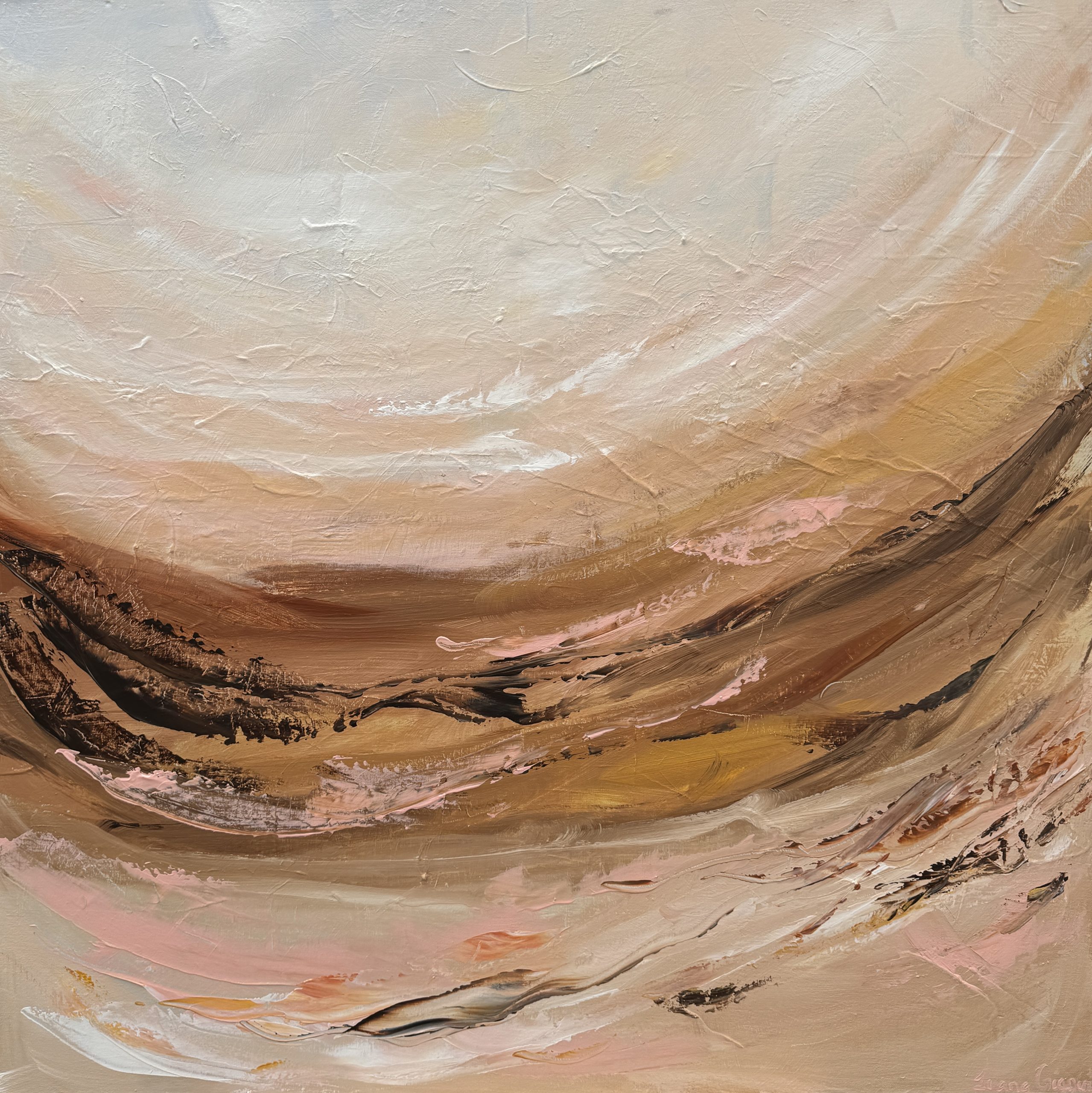 “Serenity No 14” is an abstract nature-inspired artwork that effortlessly captures the warmth and richness of the natural world. Complementing the browns, the soft yellow ochre pigments gently dance across the canvas, infusing the artwork with an exquisite sense of sunlight and positivity.