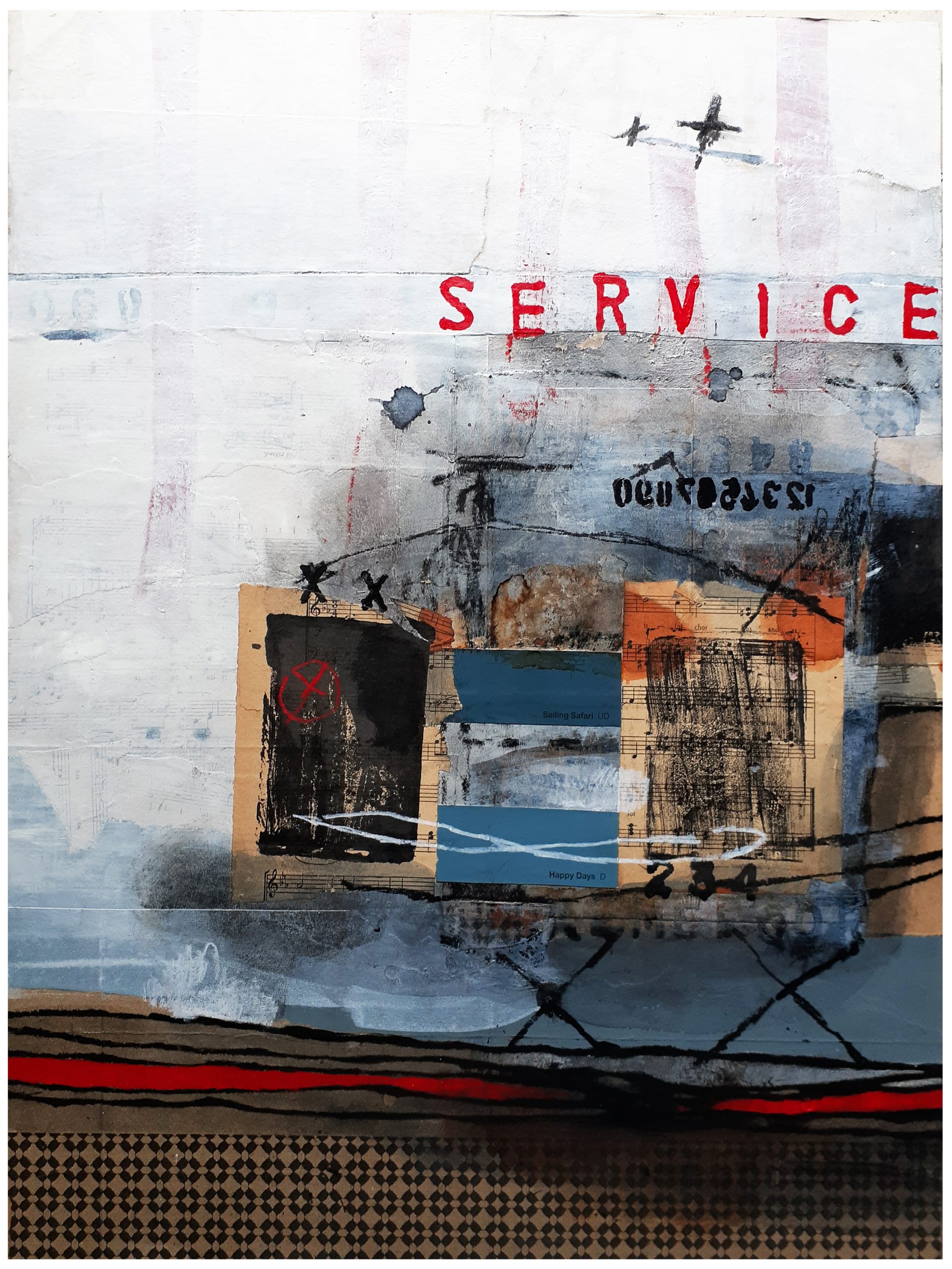 “Service” is an original mixed media artwork by G Kustom Kuhl that explores the idea of releasing what’s within for example making artwork, music etc. just because. When in a state of complete balance it’s done as a service to oneself and to help others. It just has to be done, no other real reason. Where it idea/work goes from there is no concern. Artwork is a mixed media original that includes the use of pencils, oil sticks, inks, paint, paper, stencils, vintage papers and vintage printing plates that have been relief printed. The work has been finished in polyurethane clear coat that adds a clear depth to it [not seen on pictures]. Painted black sides and frame in wooden floater gallery styled frame. Ready to hang. Signed on the front and back and comes with a certificate of authenticity.