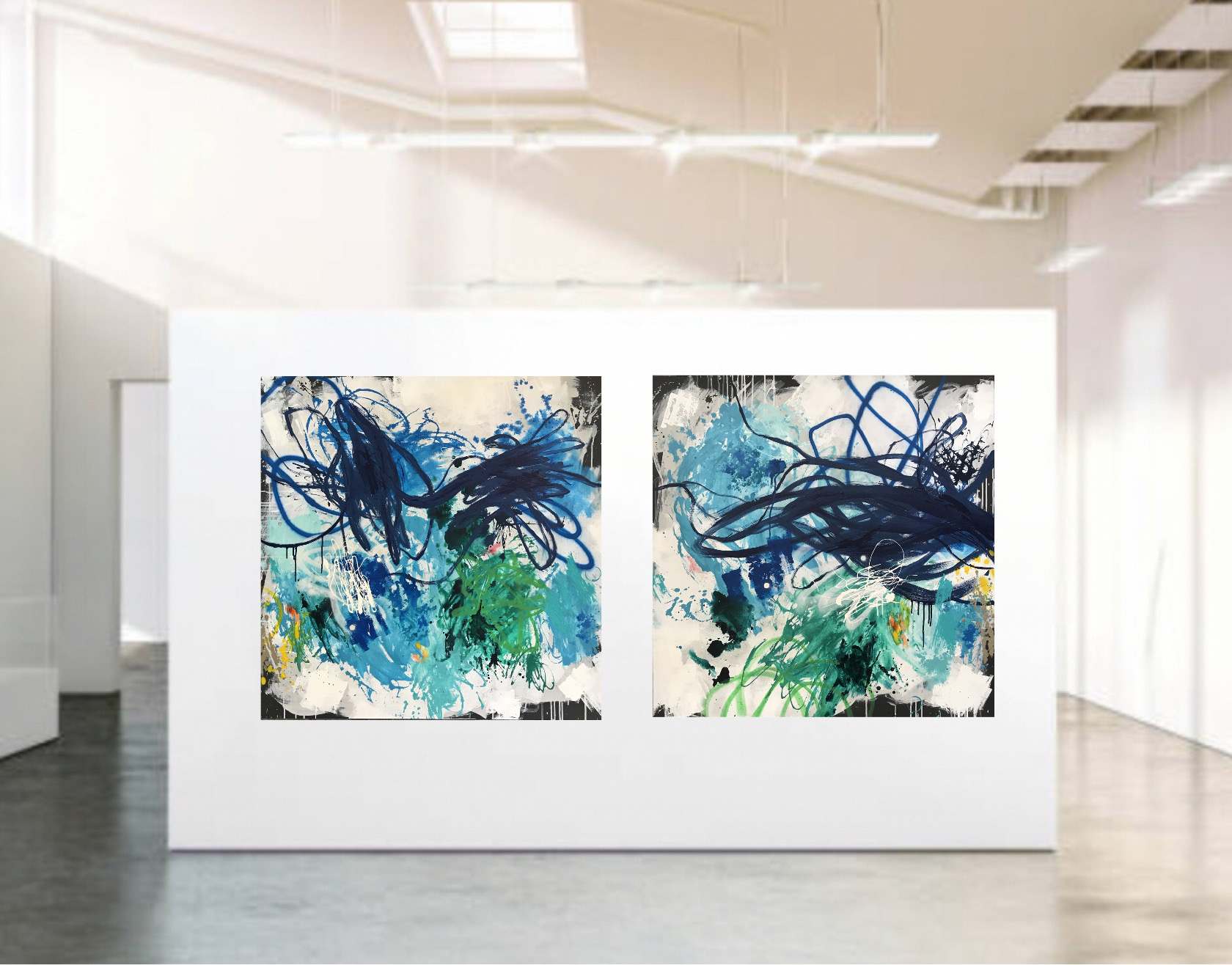 The work comes on 2 quality stretched canvases and can be hung together or with a gap and is ready to hang, the black undercoat wraps around the sides of the canvas to finish off the work neatly, so they don’t require framing.