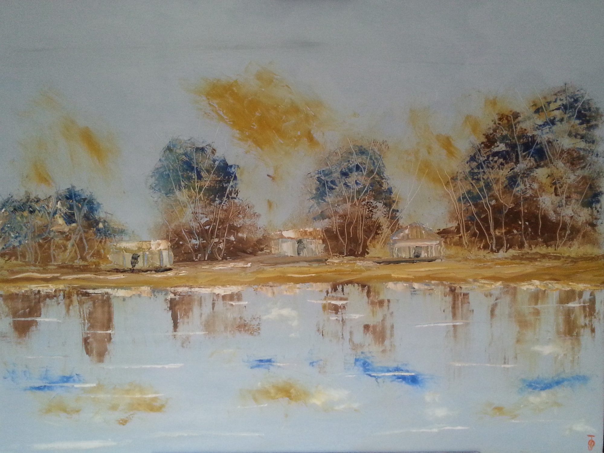This painting was created by pallet knife on cotton canvas in oil. You see many shacks along the River Murray some are so close to the banks of the river and have been in the same family for years. This art is officially recorded in the National Registry of Australian Art and Artists with the National Registration Number so you will be given a number with each art piece and it is registered for life.