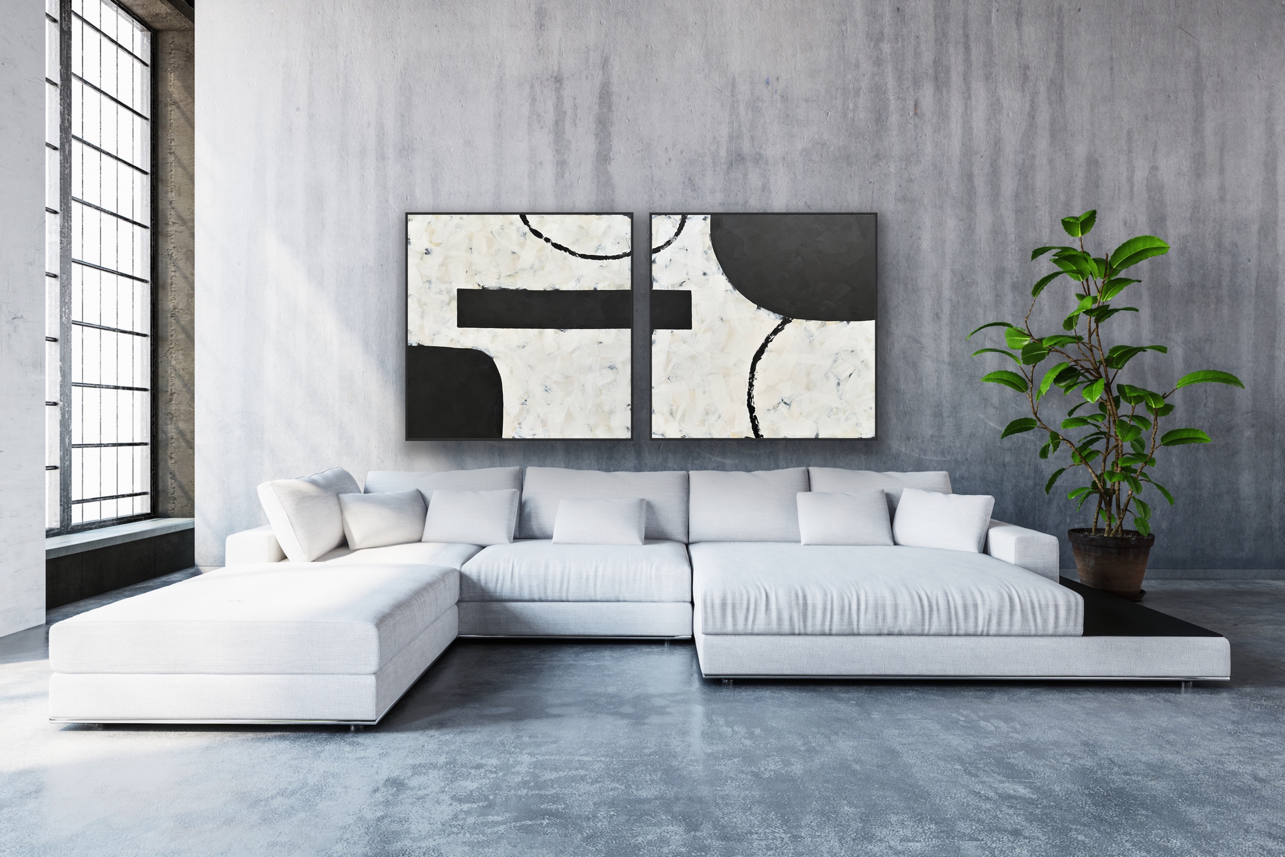Shadow by Stefana Kachirski – Â is a large modern statement piece that will bring sophistication and inspiration into a space. The abstract shapes and lines come together to create a beautiful piece of art. This artwork is an original artwork on quality canvas- stretched and ready to hang.