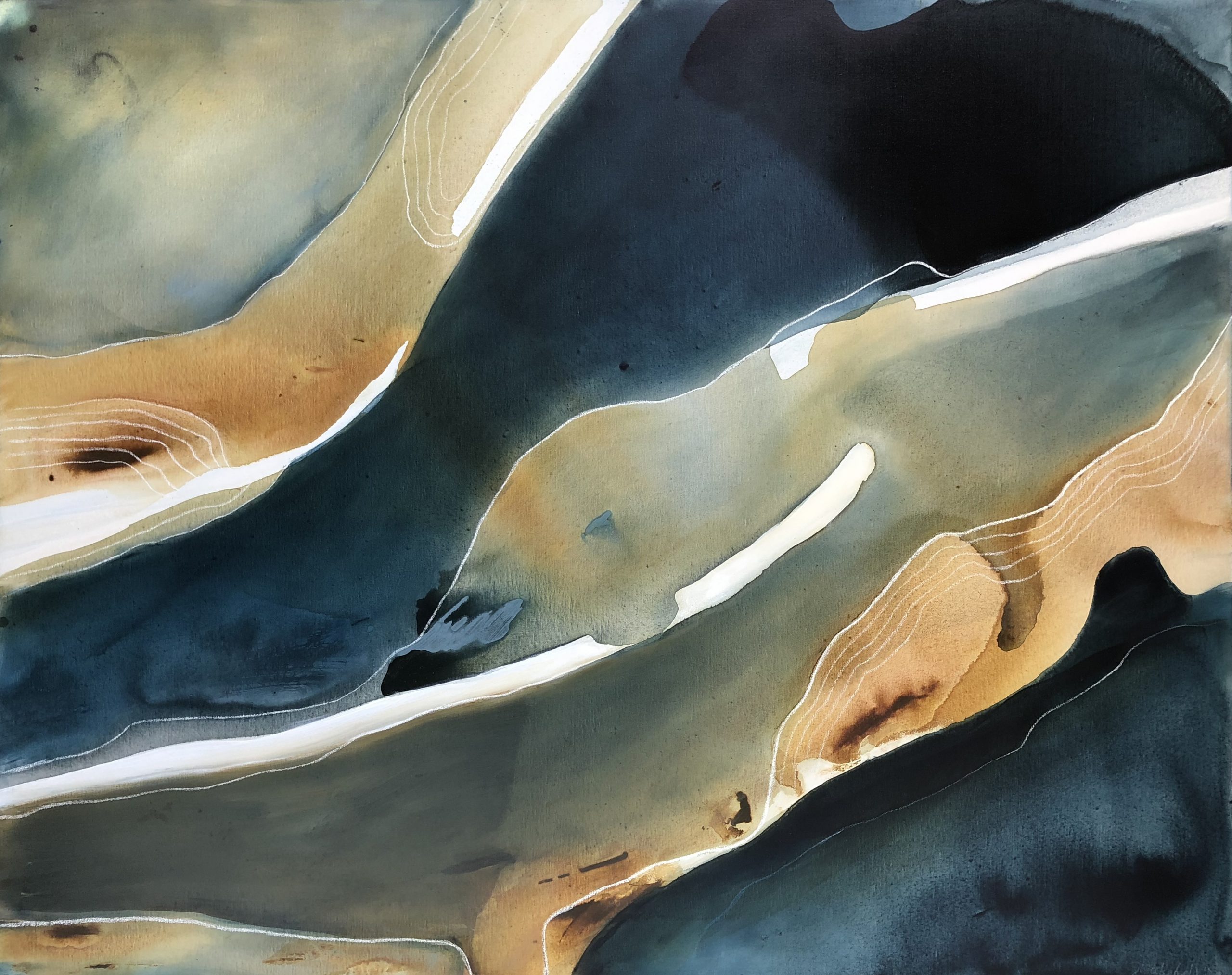 Shadows by Dinah Wakefield is inspired by the light, the colours and the natural beauty of the Noosa region of Australia. “What I love most about Noosa is the interplay of light. From the oceans to the clouds, to the river estuaries and the hinterland, this canvas unfolds before me every day and finds expression in my paintings”.