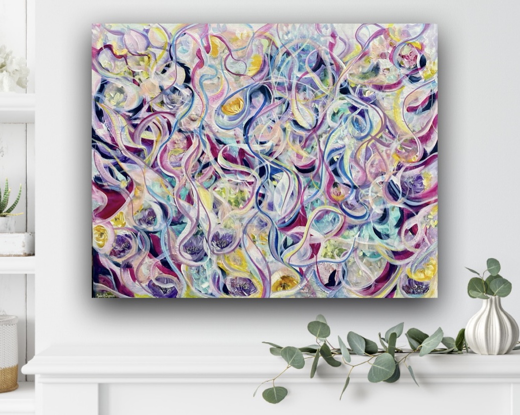 I love painting contemporary abstract pieces which have free flowing movement.