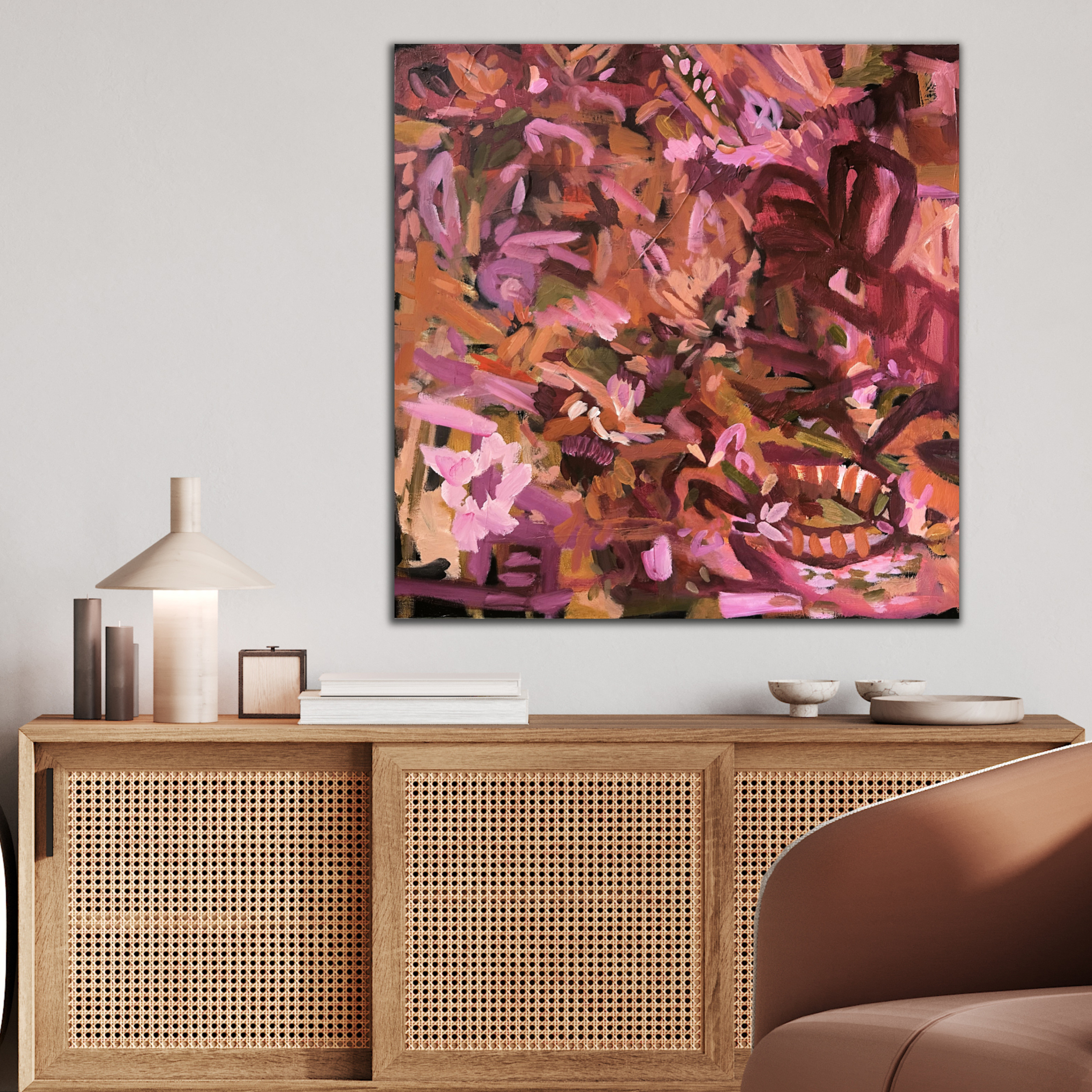 She Loved Flowers by Kylie Sams – Original abstract painting in acrylic, pencil and graphite on stretched canvas.