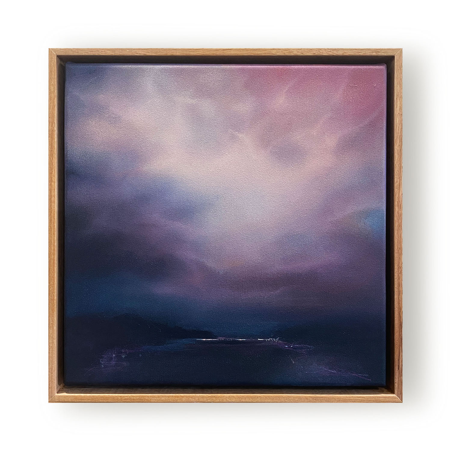 She Ran Away In Her Sleep by Michelle Harvey  An atmospheric landscape filled with movement and light. Dreamlike yet grounded, this painting captures the shifting moods of sky and horizon, bringing depth and serenity to your space. A landscape shaped by vast skies and moody atmospheres. This painting invites you to pause and find wonder in the beauty of ever-changing light.