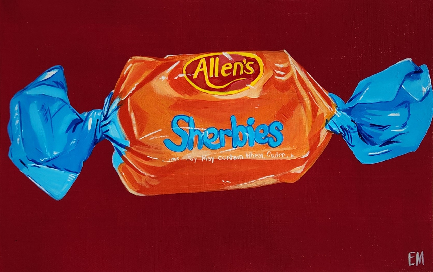 “Sherbie” by Elisha McGuckin is one of a small release of unframed, unstretched canvas.