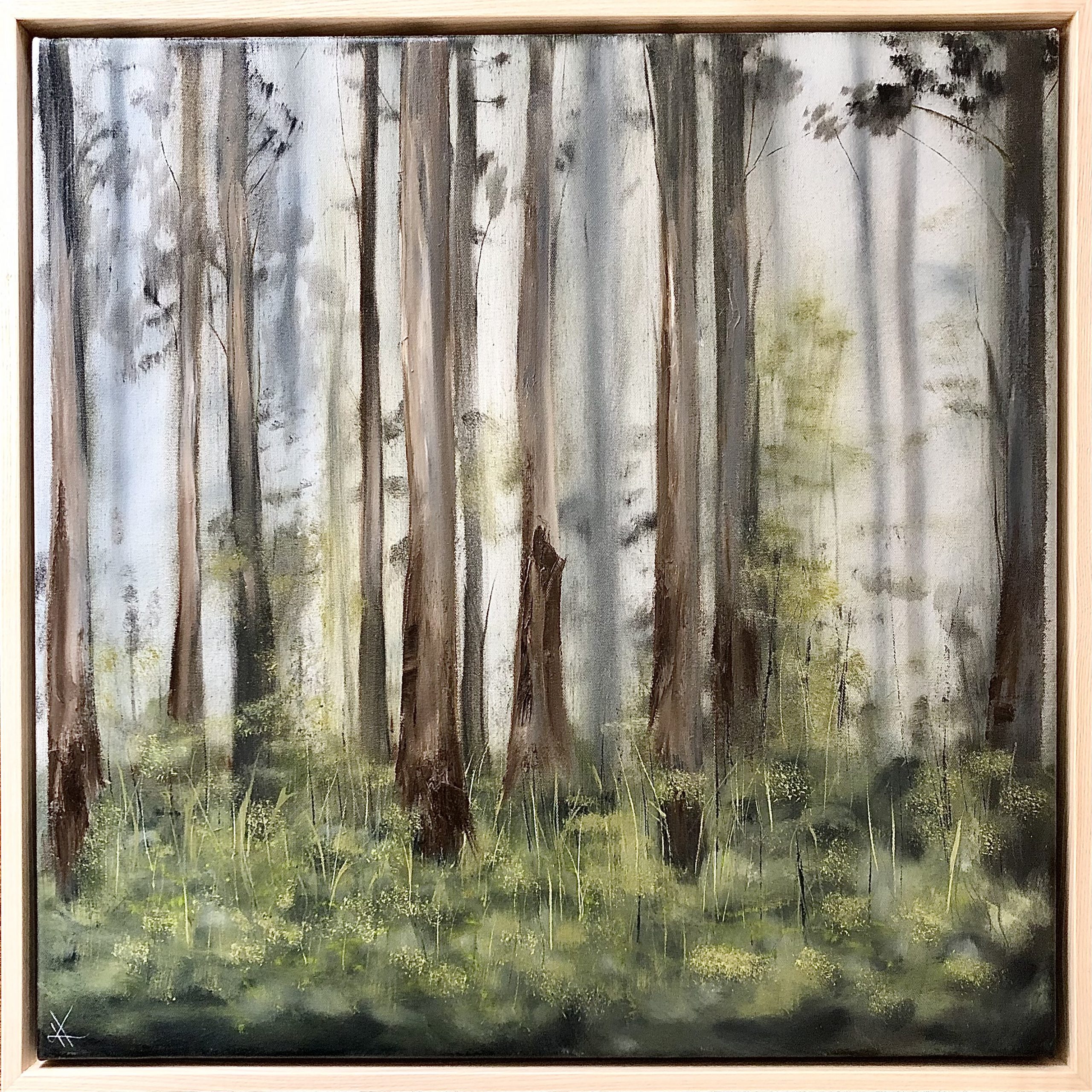 Ready to hang, original oil painting on stretched canvas with American Ash floating frame.