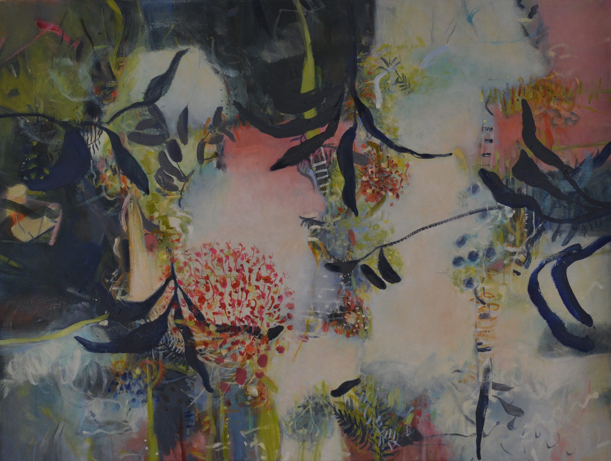 “I love being immersed in nature and draw inspiration from my coastal and bush surroundings especially local and hinterland creeks and streams. I work abstractly to reinterpret nature’s patterns, rhythms and colours”.